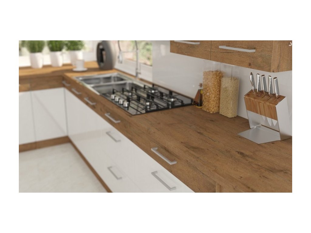 Spodní kuchyňská skříňka 40D-3S je vyrobena z lamina v dekoru dub lancelot v kombinaci s vysokým leskem. Cena skříňky je uvedena BEZ pracovní desky. Desku je možno dokoupit zvlášť podle rozměru skříňky a můžete si vybrat ze tří dekorů - Granit, Nubian a dub Lancelot. Prohlédněte si nabídku všech skříněk a vytvořte si kuchyň dle vlastních představ. Může být rohová, rovná, krátká i dlouhá. Fantazii se meze nekladou. V doplňkových fotografiích najdete pro inspiraci fotky kuchyní, které jsou z těchto skříněk sestaveny. Skříňka je dodávaná v demontu. Součástí je montážní plánek včetně všech potřebných spojovacích materiálů.