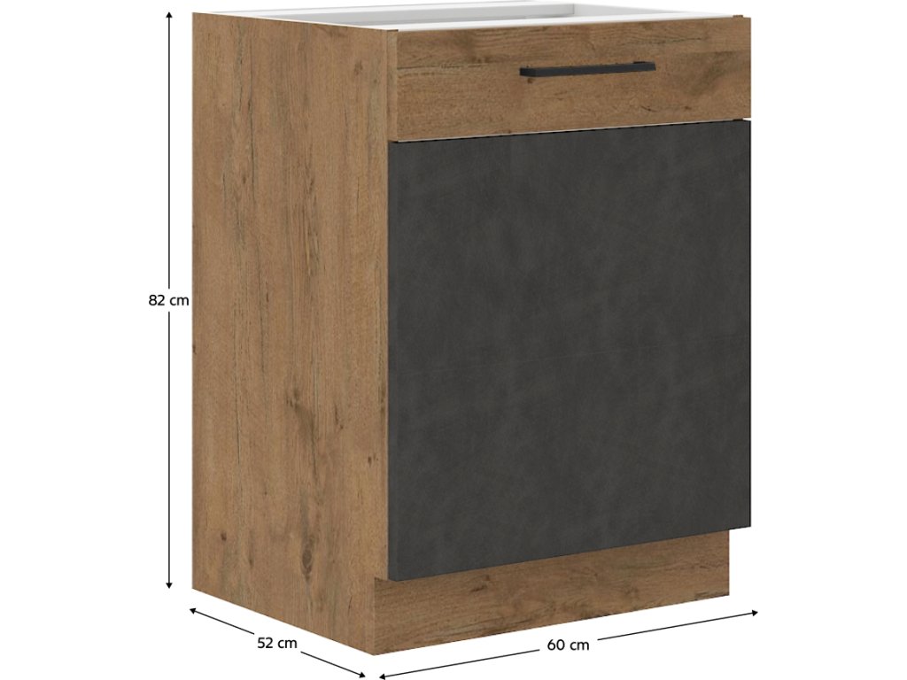 Spodní kuchyňská skříňka VEGA 60 D 1F BB, šedá mat/dub lancelot