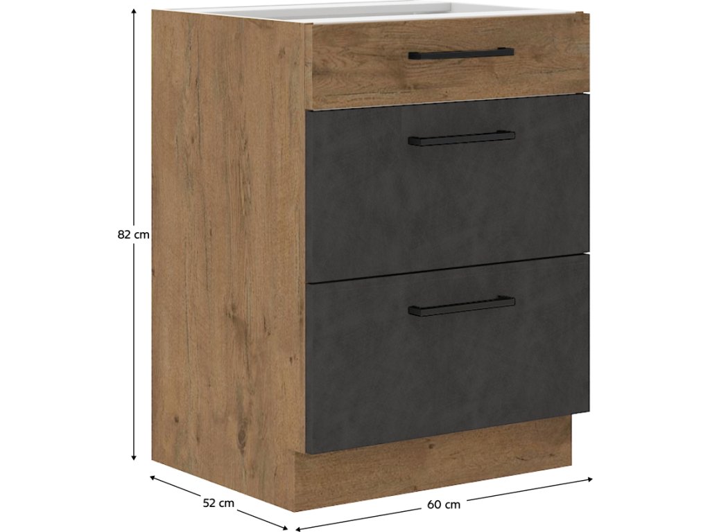 Spodní kuchyňská skříňka VEGA 60 D 3S BB se šuplíky, šedá mat/dub lancelot