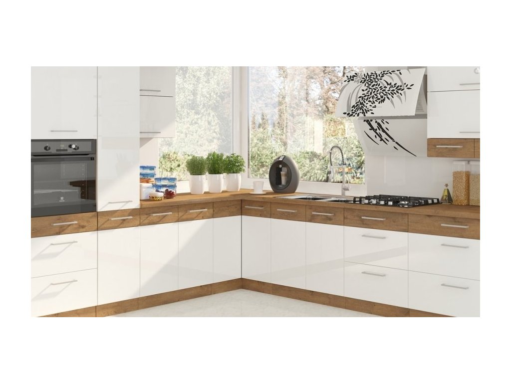 Spodní kuchyňská skříňka 80D-3S je vyrobena z lamina v dekoru dub lancelot v kombinaci s vysokým leskem. Cena skříňky je uvedena BEZ pracovní desky. Desku je možno dokoupit zvlášť podle rozměru skříňky a můžete si vybrat ze tří dekorů - Granit, Nubian a dub Lancelot. Prohlédněte si nabídku všech skříněk a vytvořte si kuchyň dle vlastních představ. Může být rohová, rovná, krátká i dlouhá. Fantazii se meze nekladou. V doplňkových fotografiích najdete pro inspiraci fotky kuchyní, které jsou z těchto skříněk sestaveny. Skříňka je dodávaná v demontu. Součástí je montážní plánek včetně všech potřebných spojovacích materiálů.
