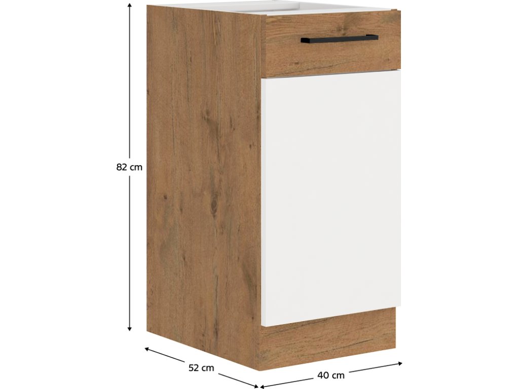 Spodní kuchyňská skříňka VEGA D40 1F BB, dub lancelot/bílý lesk