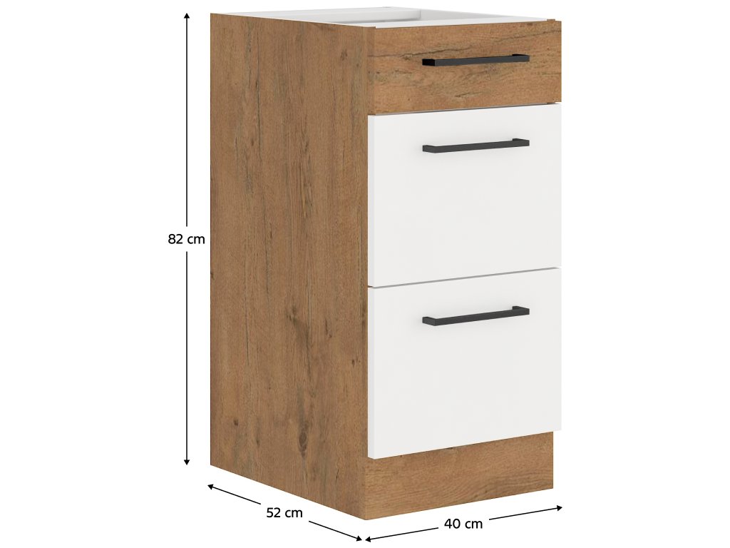 Spodní kuchyňská skříňka VEGA D40 3S BB se šuplíky, dub lancelot/bílá lesk