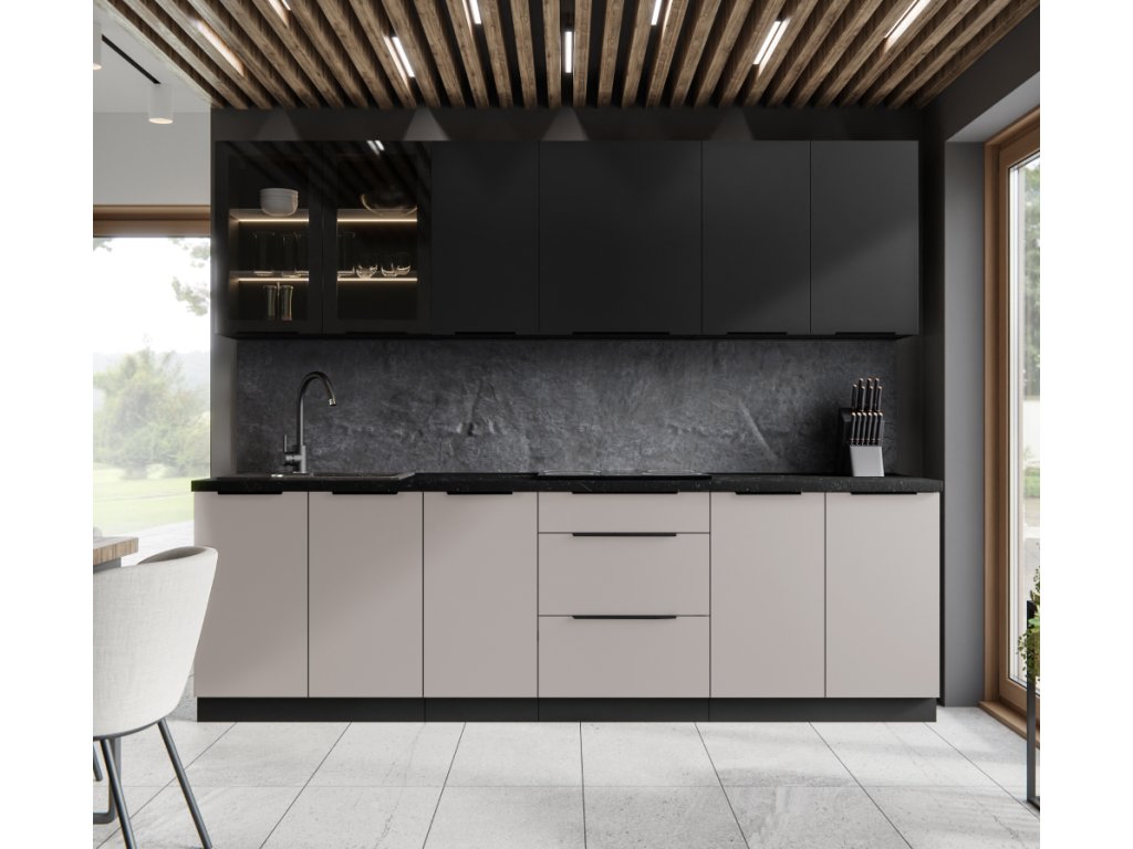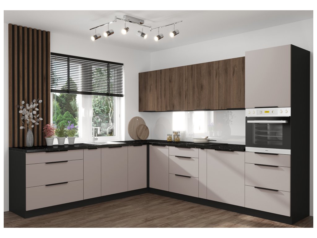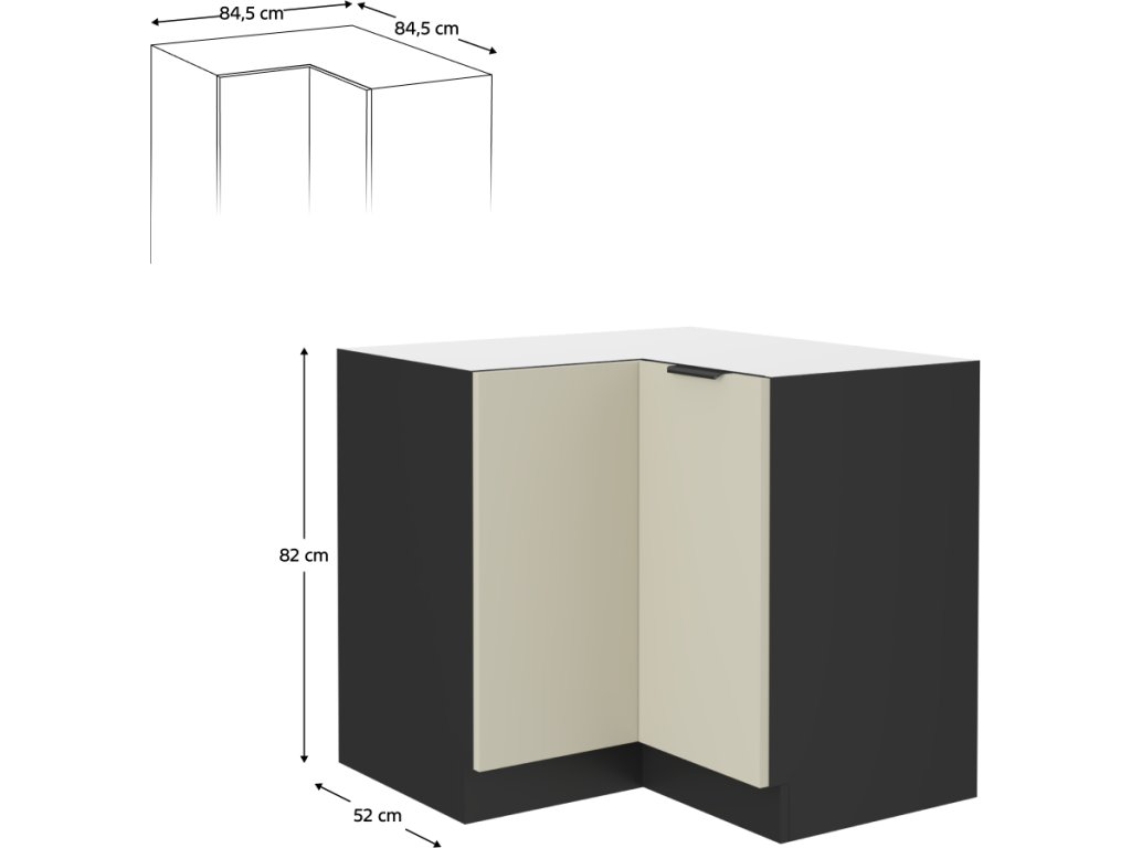 Spodní rohová skříňka, kašmír/černá, ARAKA 90x90 DN 2F BB