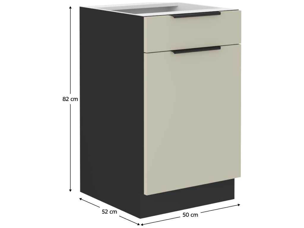 Spodní sektorové skříňky jsou dodávány včetně dolní lišty (sokla), bez pracovní desky. Pracovní desku o tloušťce 3,8 cm si můžete doobjednat v provedení marmur roma za cenu 1.650 Kč/bm.
