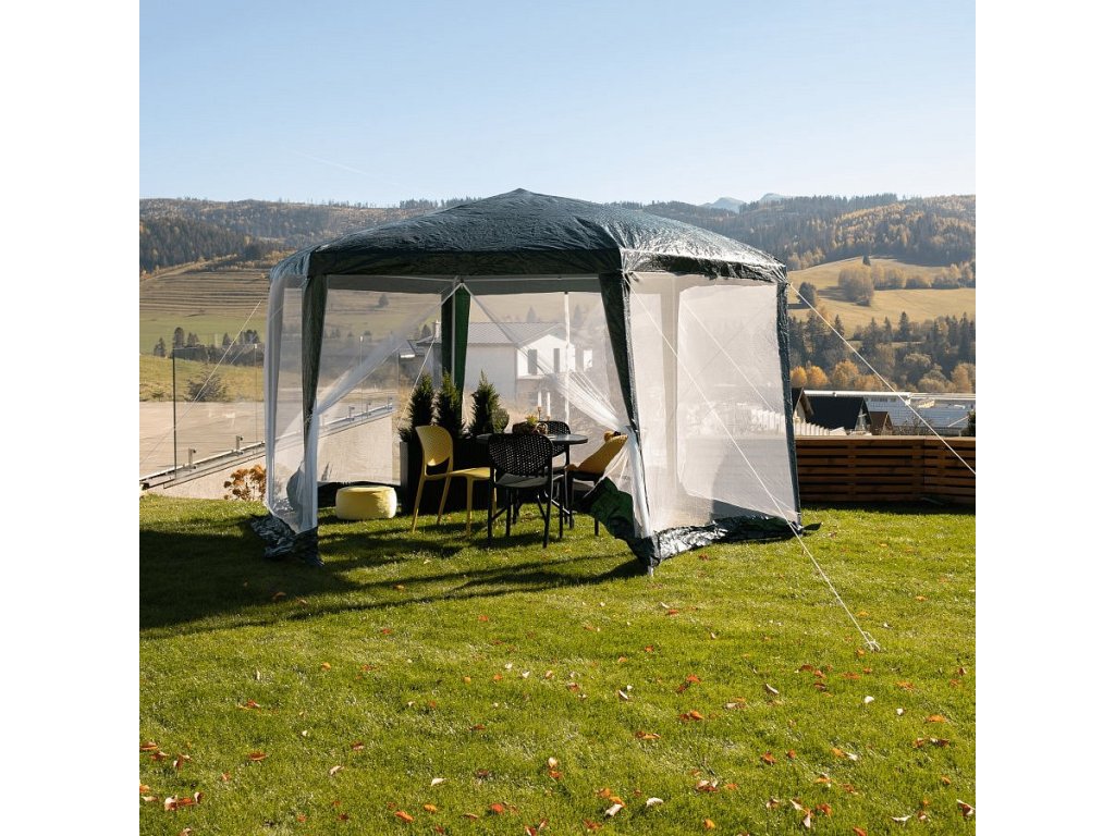 Stanový altán do zahrady, 3,9x2,5x3,9m, zelená / bílá, RINGE TYP 1 + 6 bočních stran