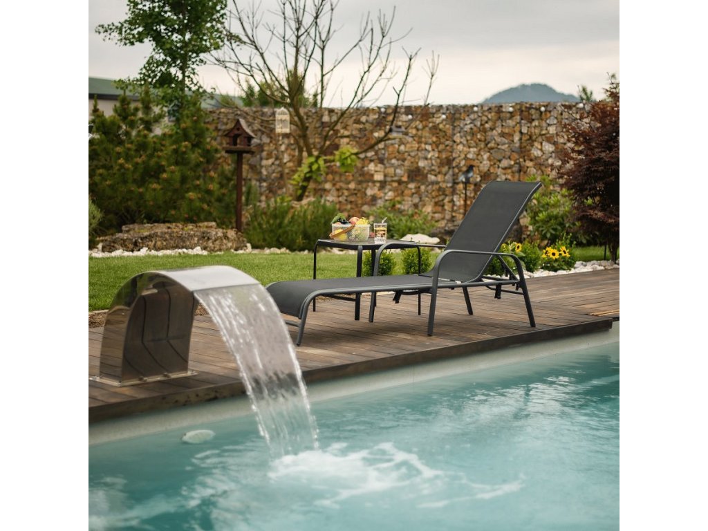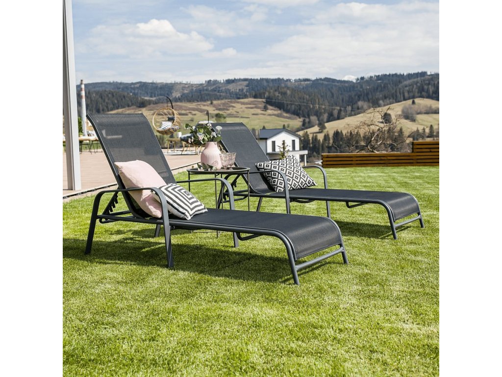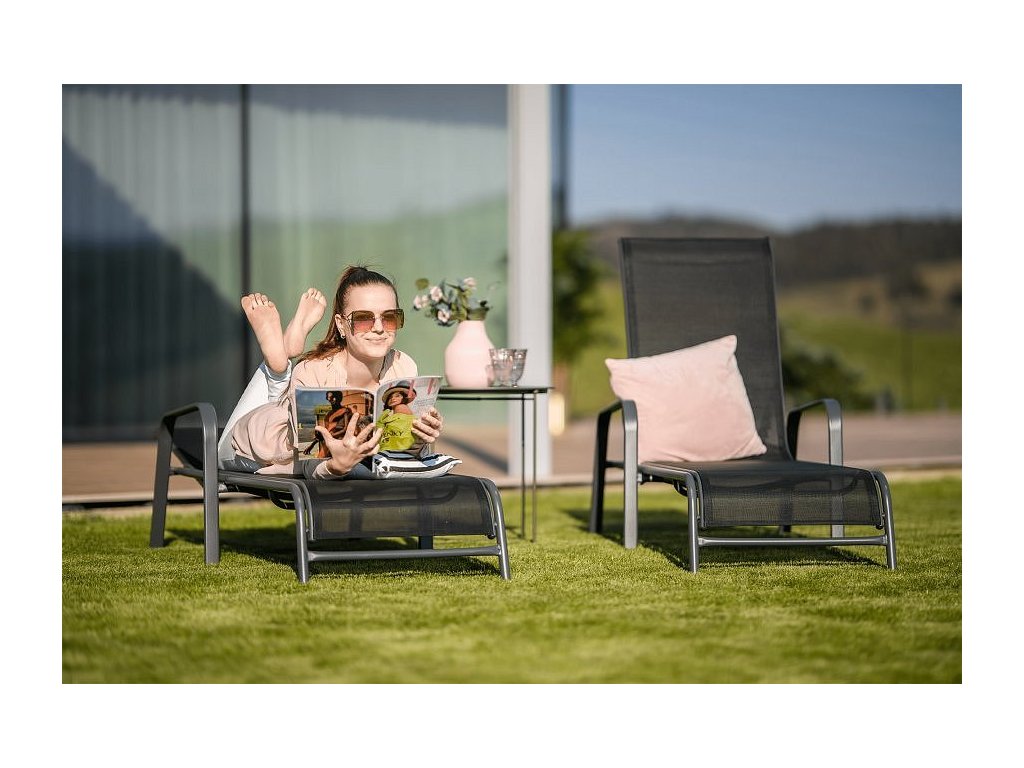 Stohovatelné polohovací zahradní lehátko, černá/šedá, ATREO