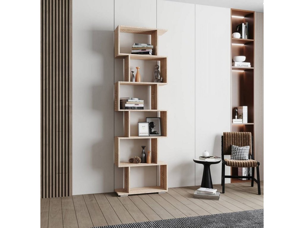 Hlavní vlastnosti: - Design ve tvaru S - Šest otevřených přihrádek - Mimořádná police - Rozměry cca v. 196 x š. 60 x h. 24 cm. Dobrá knihovna by měla nabízet maximální úložný prostor a zároveň zabírat málo místa. Police „Palusa M“ ve tvaru S nabízí šest úrovní úložného prostoru pro knihy, rostliny nebo obrázky, které dodají místnosti nový vzhled. VCM se specializuje na design, výrobu a distribuci nábytku s férovým poměrem cena/výkon od 70. let 20. století a již jím ozdobila miliony domácností.