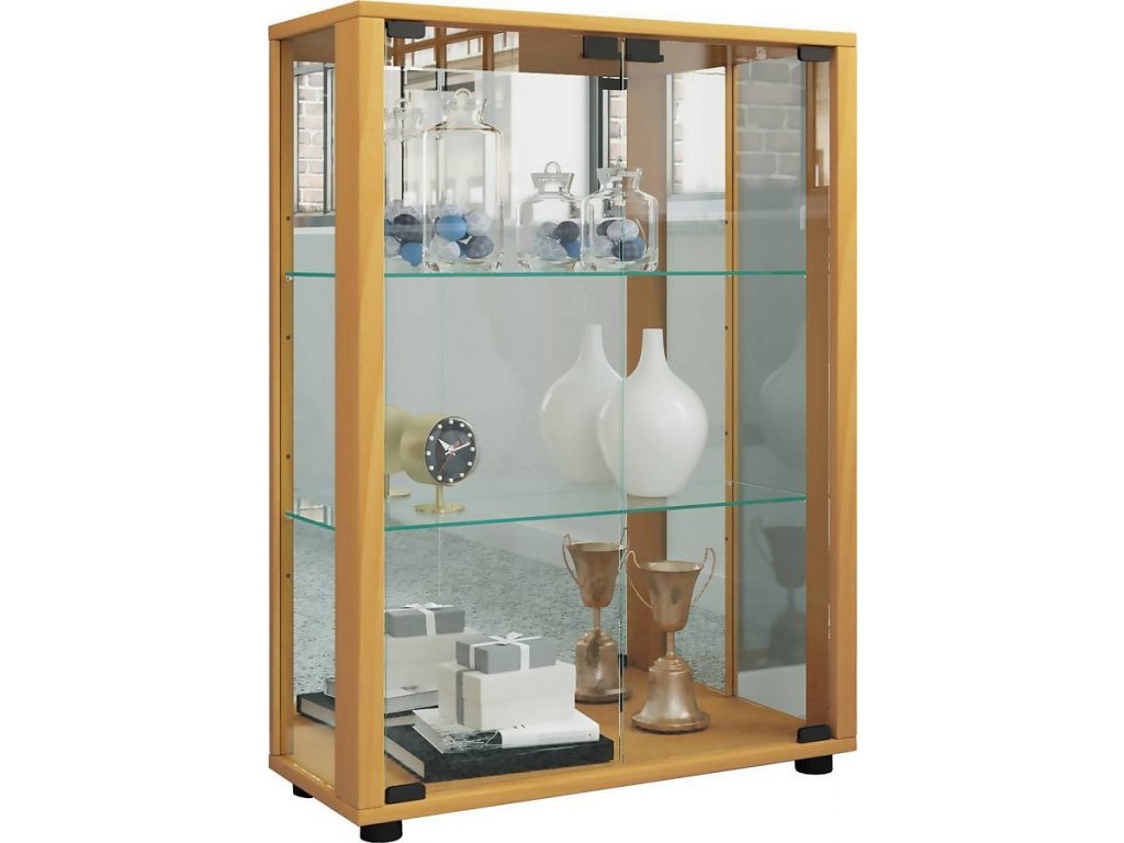 Stojací vitrína Sintalo se zrcadlem včetně LED osvětlení, buk
