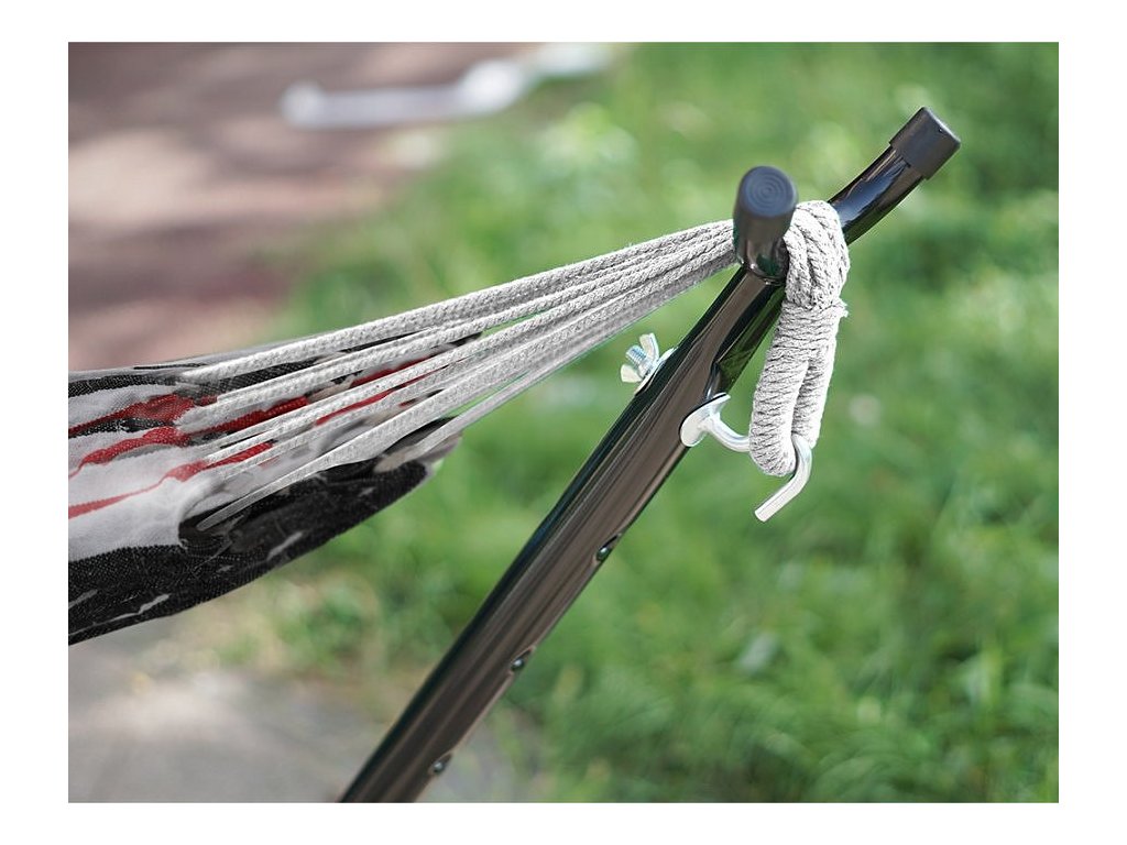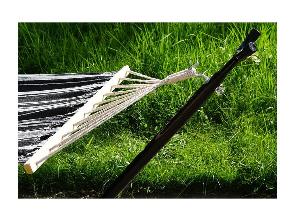 Zahradní stojan na houpací síť OTAN NEW TYP 3 Materiál: ocel Barva: černá Rozměry (ŠxHxV): 275x100x100 cm Maximální zatížení: 100 kg Dodávané v praktickém obalu. Dodávané v demontu.
