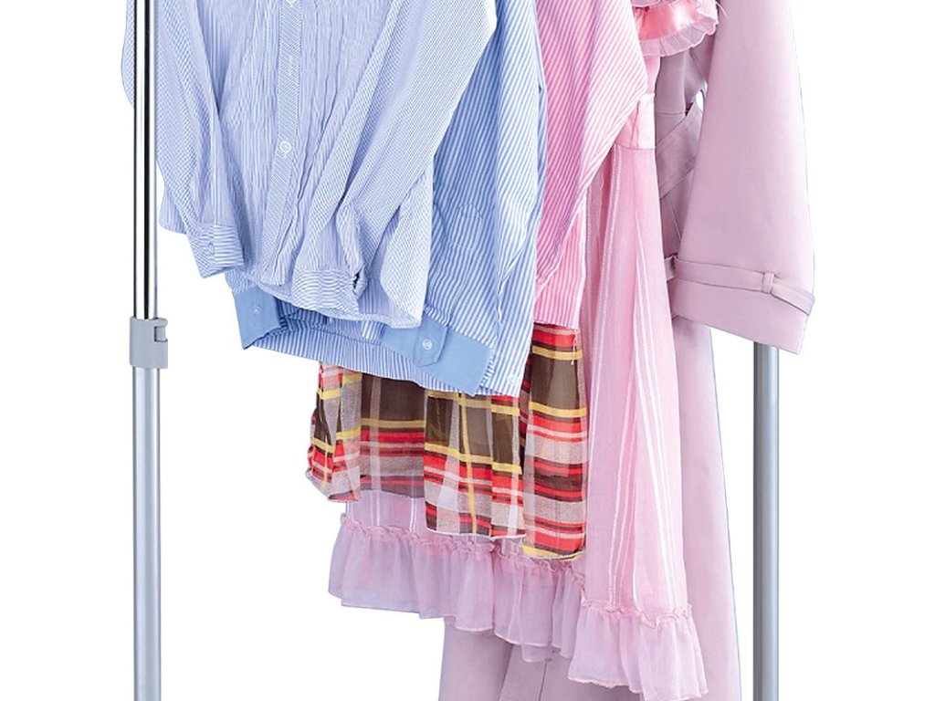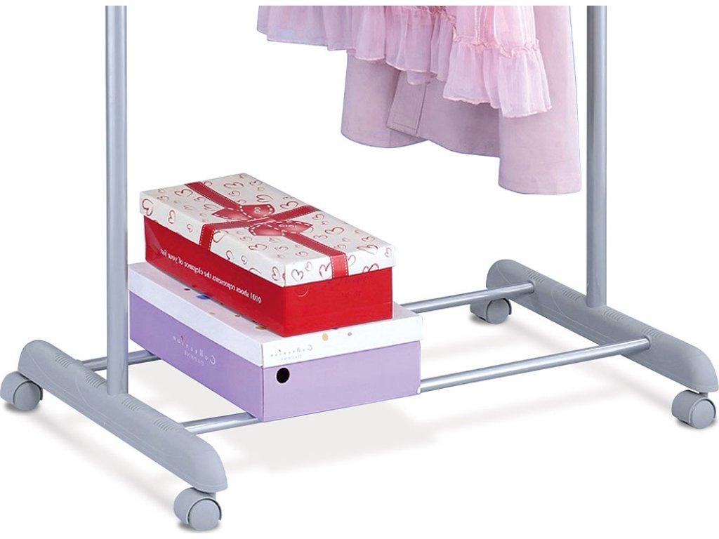 Jednoramenný stojan na šaty v šedém provedení kombinuje kovovou chromovanou tyč s plastovými prvky, což zajišťuje pevnost a stabilitu při zachování lehkosti. Výška stojanu je nastavitelná, což umožňuje přizpůsobení různým délkám oděvů. Spodní odkladač poskytuje praktický prostor pro uložení krabic nebo bot, čímž zvyšuje funkčnost a usnadňuje organizaci prostoru. Stojan je osazen kolečky pro snadnou manipulaci a přesun v interiéru. Je ideální pro dočasné i dlouhodobé zavěšení oděvů v domácnostech, obchodech či ateliérech.