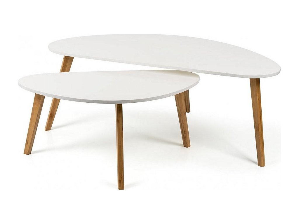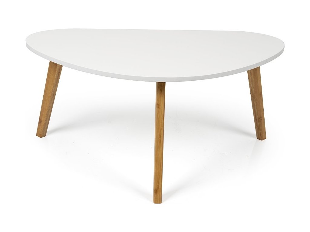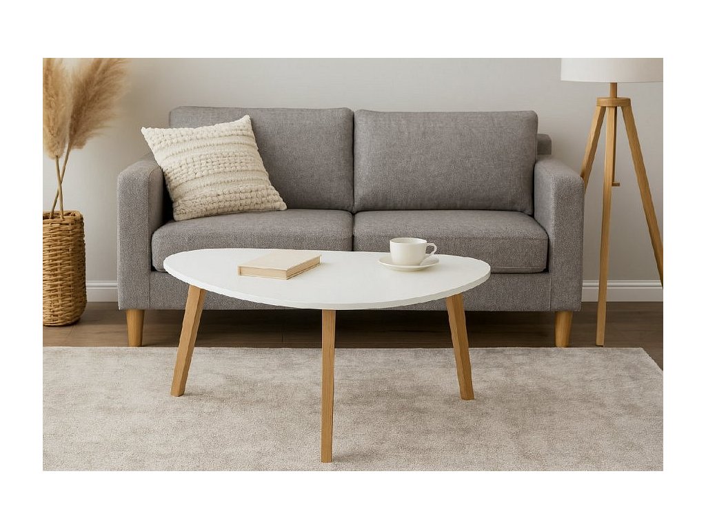 Moderní konferenční stolek s originálním tvarem desky. Bílá stolová deska působí čistě a elegantně. Stabilní nohy z přírodního dřeva dodávají teplý a skandinávský vzhled. Vhodný do obývacího pokoje či moderní pracovny. Kombinace jednoduchosti, praktičnosti a stylového designu.