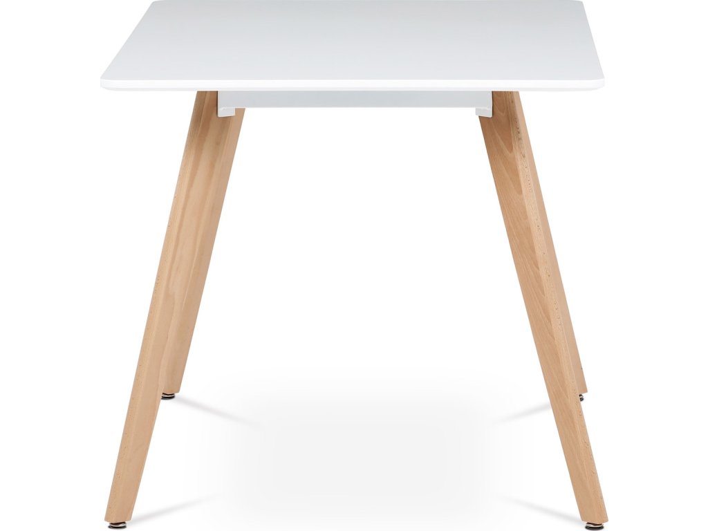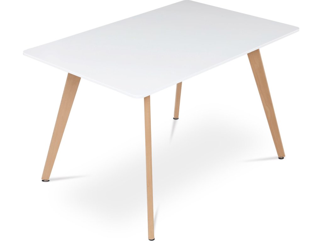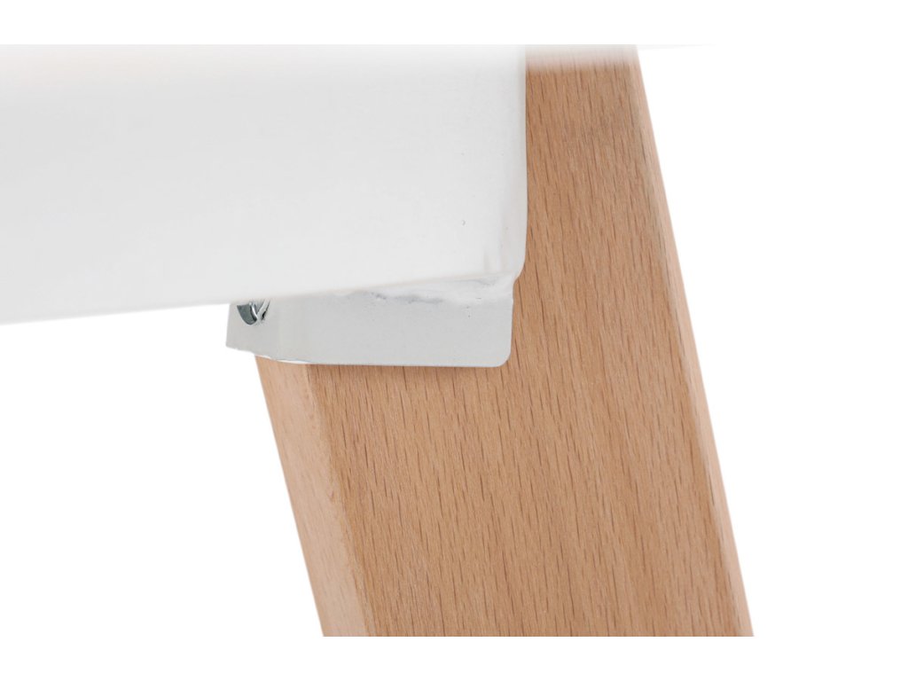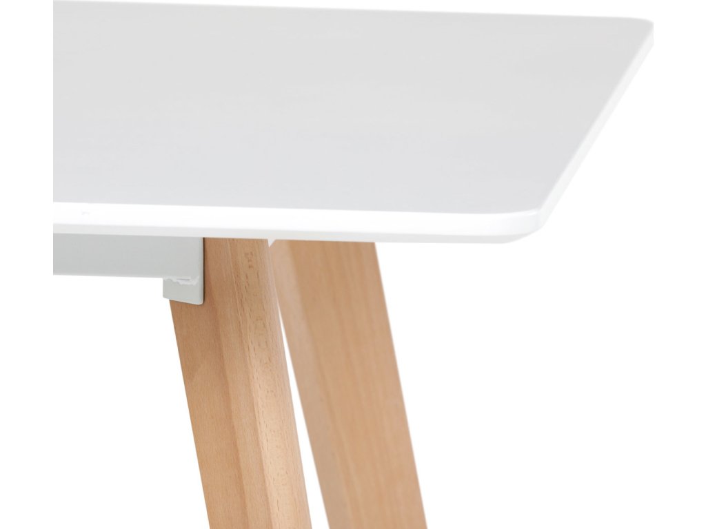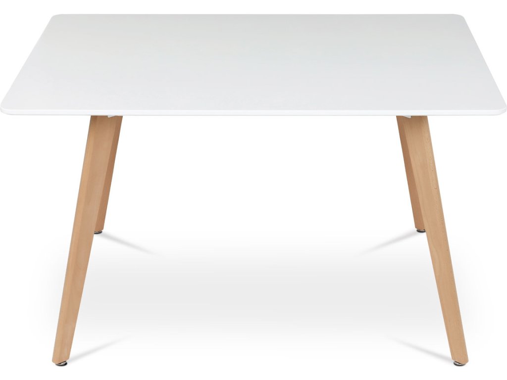 Jídelní stůl o rozměrech 120x80x74 cm kombinuje pevnou desku z MDF s matnou bílou povrchovou úpravou a nohy z masivního buku, které dodávají stabilitu a přírodní vzhled. Deska stolu je navržena s jemně zaoblenými rohy pro bezpečnost a pohodlí při používání. Masivní bukové nohy jsou vybaveny rektifikačními patkami, které umožňují vyrovnání nerovností podlahy a zajišťují stabilitu stolu. Matný lak na desce usnadňuje údržbu a odolává běžnému opotřebení. Stůl je pevný a vhodný pro každodenní použití v jídelnách i kuchyních.