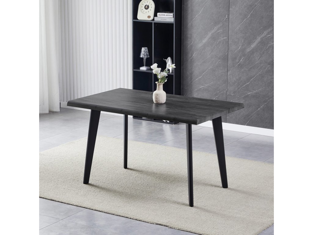 Tento jídelní stůl značky Autronic v dekoru šedého dubu vnáší do interiéru rustikální kouzlo s moderním nádechem. Obdélníková deska z kvalitního MDF materiálu imituje vzhled opracovaného dřeva a přidává prostoru na autentičnosti a teple. Černé kovové nohy přidávají industriální kontrast a zajišťují pevnost a stabilitu. Svým nadčasovým designem a praktickými rozměry 130x80x75 cm se tento stůl hodí do různých stylů jídelen i kuchyní. Vyberte si tento elegantní a odolný stůl od Autronic a dopřejte si pohodlné rodinné stolování.