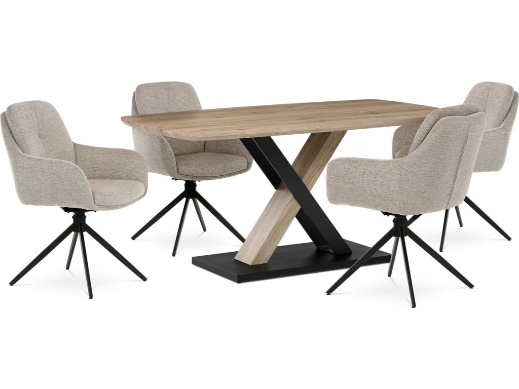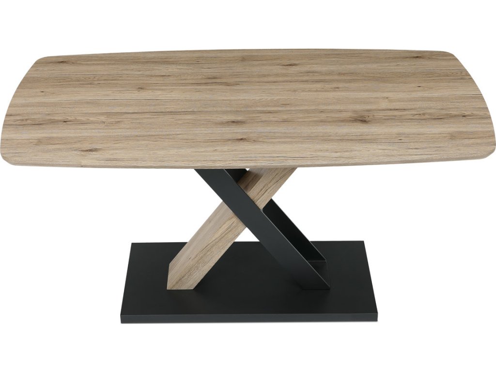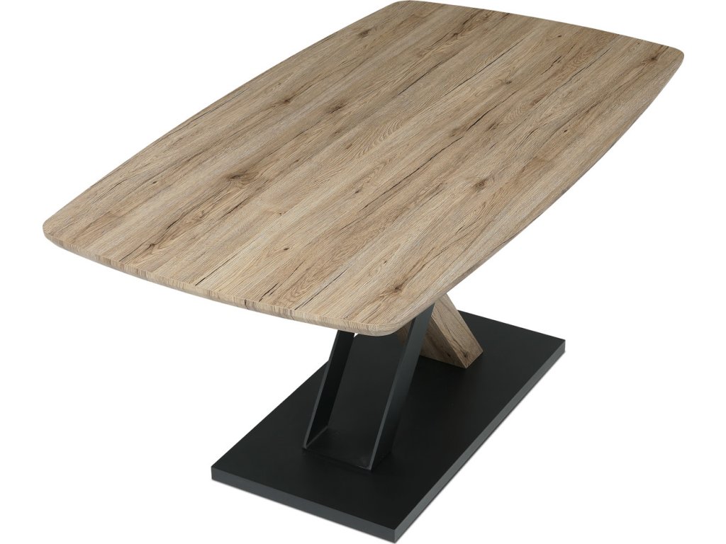 Moderní jídelní stůl značky Autronic je skvělou volbou pro stylové interiéry. Jeho robustní deska z MDF v dekoru dubu San Remo dodává prostoru přírodní eleganci, zatímco centrální kovová podnož v kombinaci s MDF zajišťuje stabilitu a originální vzhled. Atypický zaoblený tvar desky podtrhuje jeho jedinečnost, díky čemuž se stane středobodem každé jídelny. Tento stůl je ideální pro rodinná posezení i slavnostní večeře, přičemž svým nadčasovým designem pozvedne každý interiér.