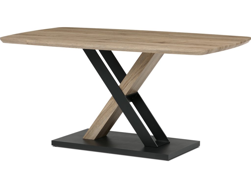 Stůl jídelní, 160x90x75 cm, MDF, kov, dub san remo, černá HT-W1570 SRE