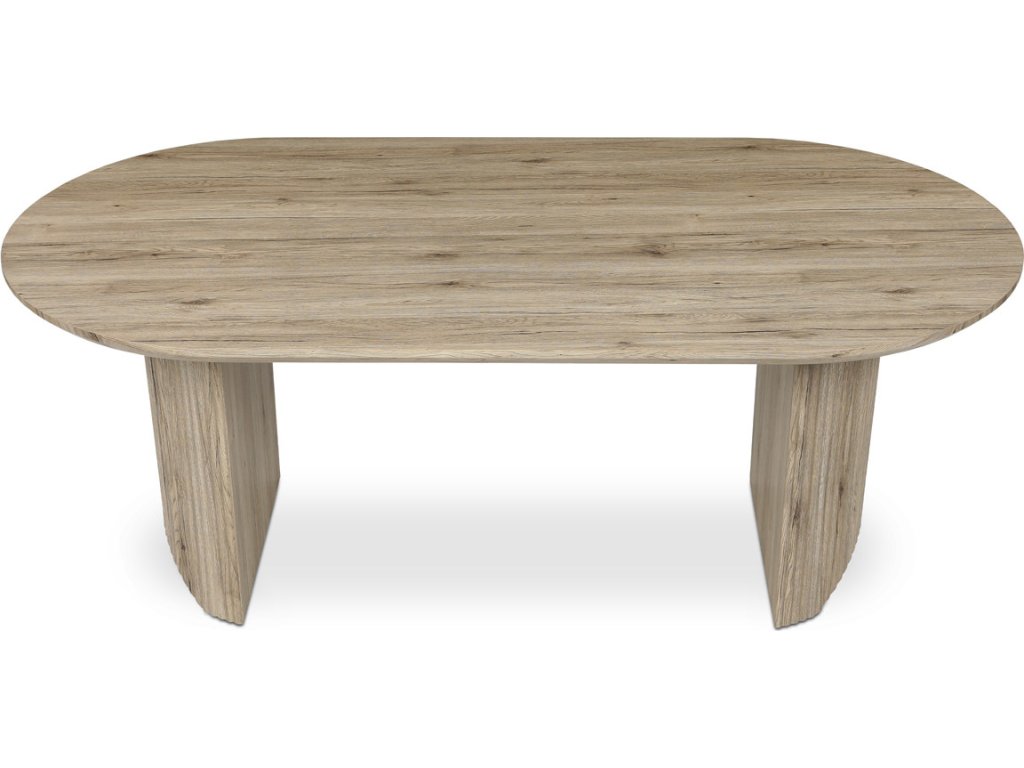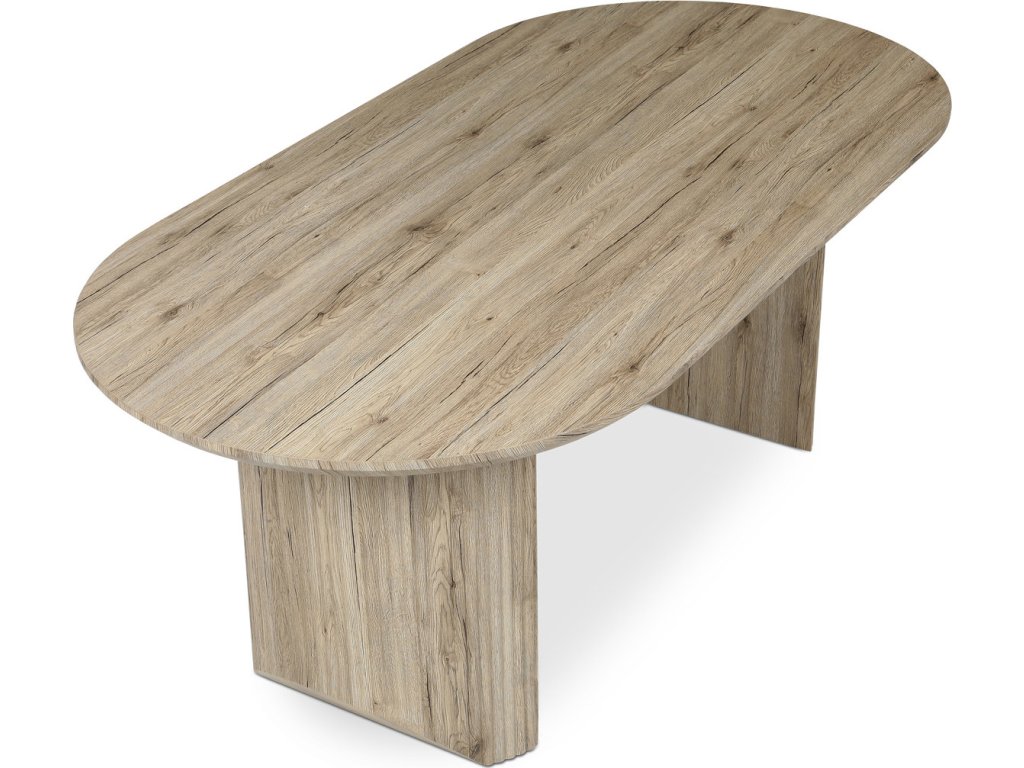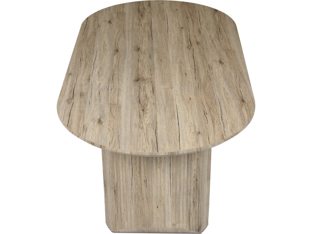 Jídelní stůl značky Autronic v přírodní dubové barvě vyniká moderním designem a kvalitním zpracováním. Oválná deska z MDF materiálu je odolná a snadno udržovatelná, což z něj činí ideální volbu pro rodinné večeře i slavnostní příležitosti. Matná povrchová úprava a detailně propracované nohy dodávají stolu stylový vzhled.