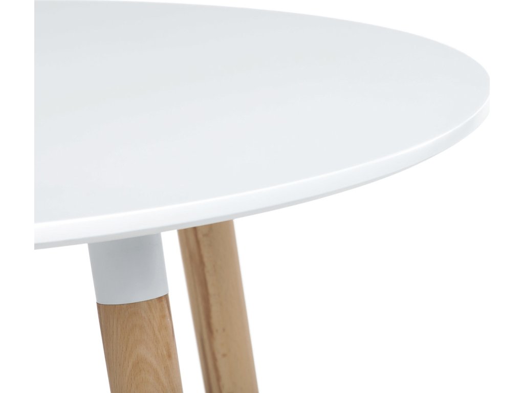 Jídelní stůl DT-306 WT nabízí kombinaci moderního designu a praktických vlastností vhodných pro každodenní použití. Deska stolu je vyrobena z MDF s matným bílým lakem, který zajišťuje hladký povrch snadný na údržbu a odolný vůči běžnému opotřebení. Stabilní kovová konstrukce je doplněna o nohy z masivního dřeva, které dodávají stolku pevnost a přírodní vzhled. Zaoblené rohy přispívají k bezpečnosti a zároveň podtrhují jemný design. Stůl je vybaven rektifikačními nohami, které umožňují vyrovnání na nerovném povrchu, čímž zvyšují stabilitu. Rozměry 90x90x75 cm poskytují dostatek prostoru pro pohodlné stolování.