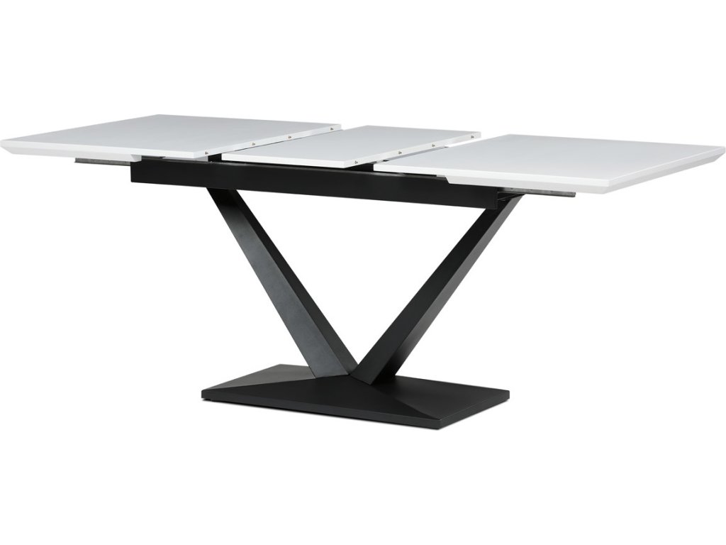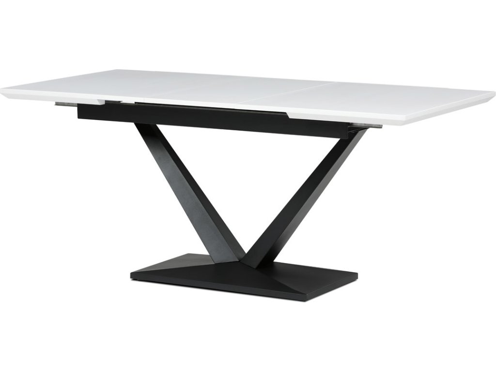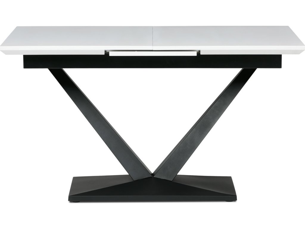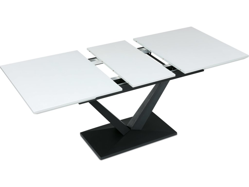 Rozkládací jídelní stůl značky Autronic vyniká svou robustní centrální nohou ve tvaru V. Bílá matná deska z MDF materiálu nabízí odolný a snadno udržovatelný povrch, ideální pro každodenní stolování. Díky rozkládacímu mechanismu snadno přizpůsobíte velikost stolu aktuálním potřebám, což je skvělé pro rodinná setkání nebo hosty.Tento stůl bude stylovým a funkčním doplňkem každé jídelny, který zaujme na první pohled.