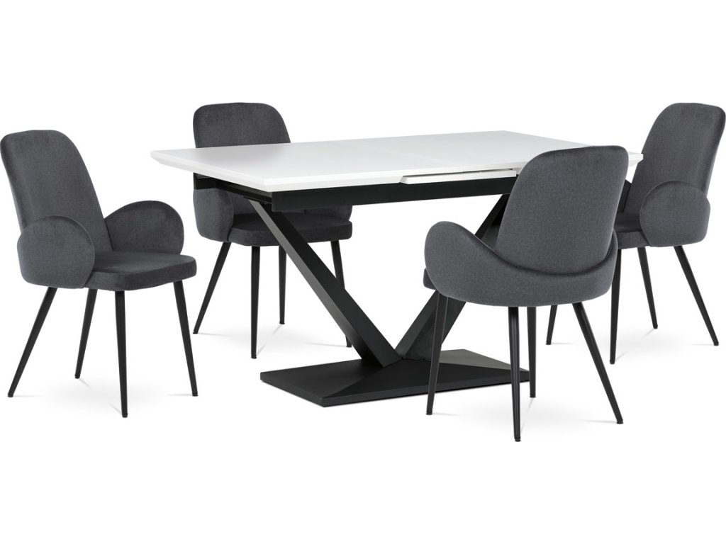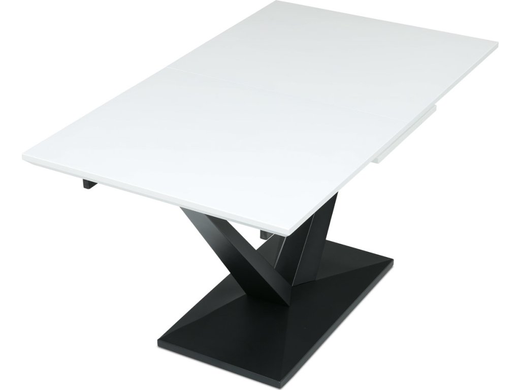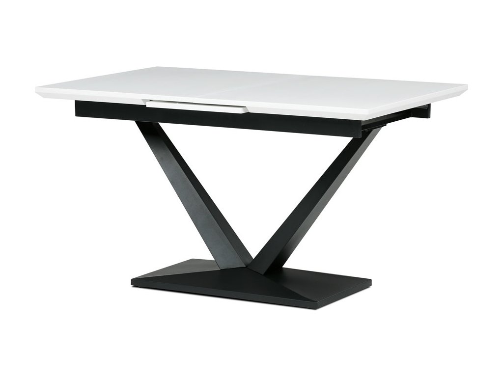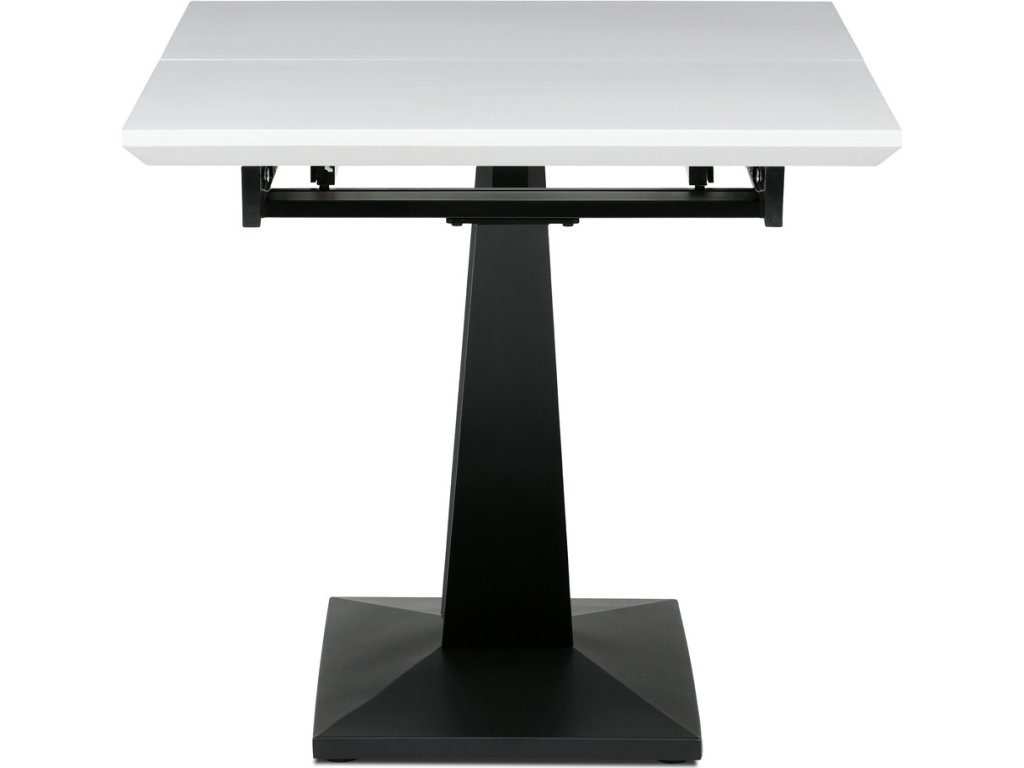 Rozkládací jídelní stůl značky Autronic vyniká svou robustní centrální nohou ve tvaru V. Bílá matná deska z MDF materiálu nabízí odolný a snadno udržovatelný povrch, ideální pro každodenní stolování. Díky rozkládacímu mechanismu snadno přizpůsobíte velikost stolu aktuálním potřebám, což je skvělé pro rodinná setkání nebo hosty.Tento stůl bude stylovým a funkčním doplňkem každé jídelny, který zaujme na první pohled.