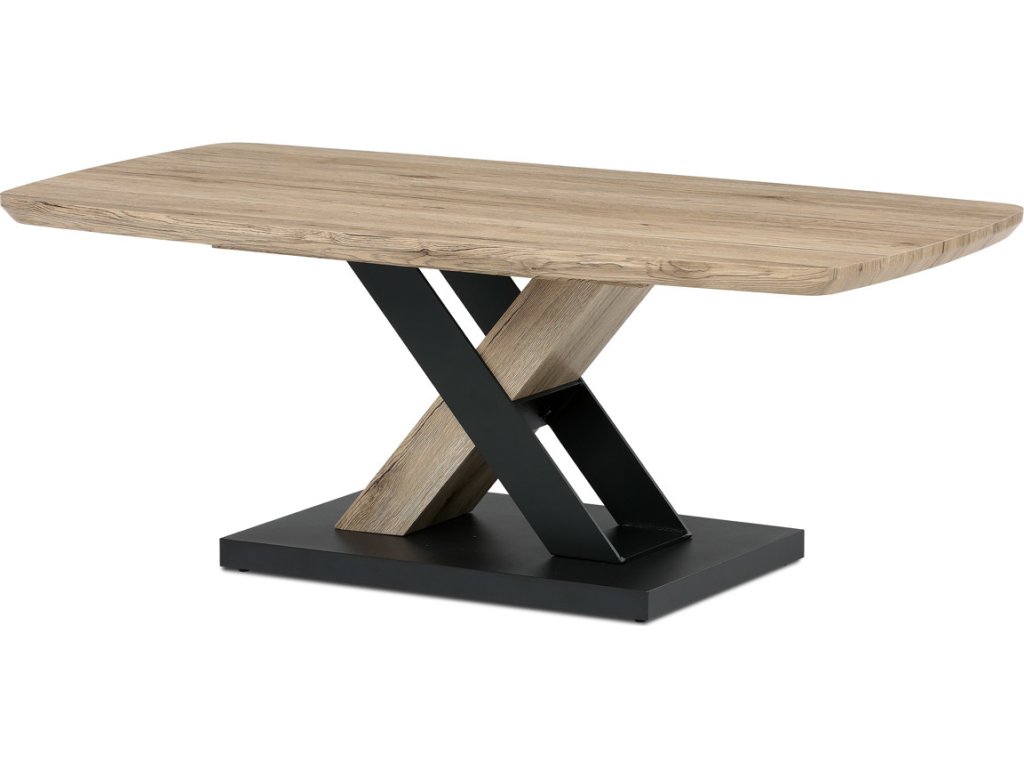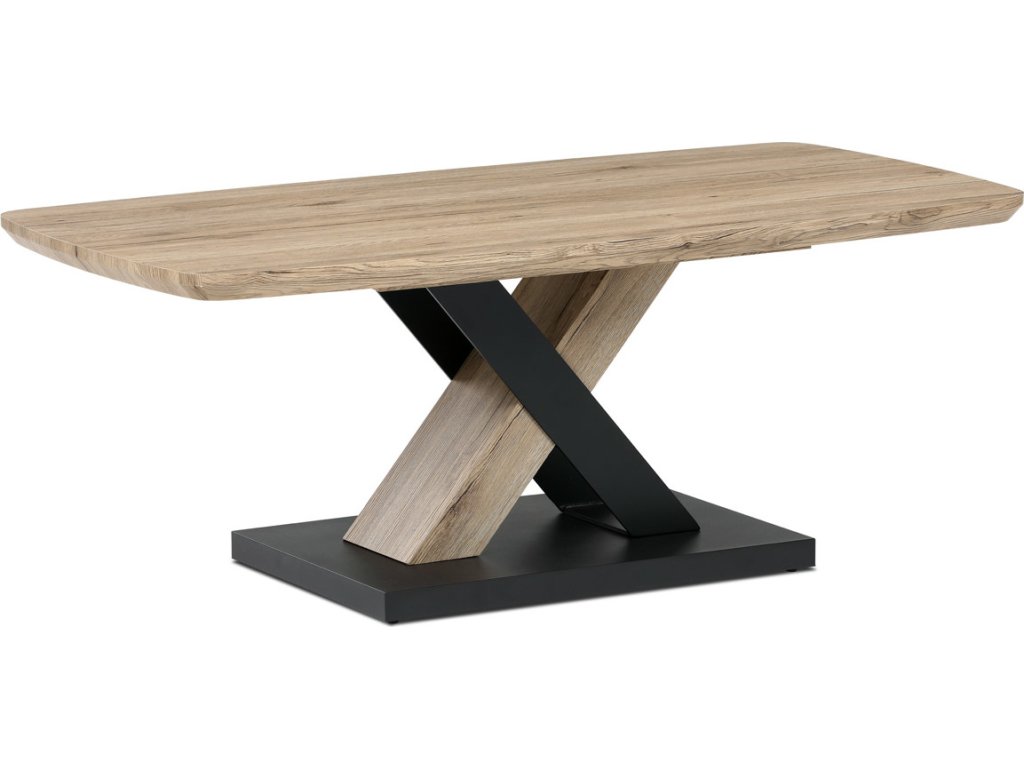 Konferenční stolek značky Autronic zaujme moderním designem s dekorem dubu San Remo, který vnese do vašeho obývacího pokoje příjemnou atmosféru. Atypická deska z MDF s matnou povrchovou úpravou upevněná na centrální konstrukci, která kombinuje přírodní a kovové prvky. Stabilní podnož zajišťuje pevnost a odolnost, díky čemuž je stolek nejen stylovým, ale i praktickým doplňkem. Ideální pro každodenní využití i jako reprezentativní prvek vašeho interiéru.