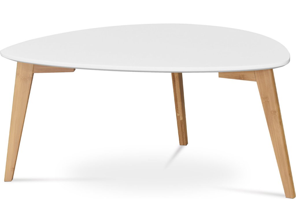 Stůl konferenční 85x48x40 cm, MDF bílá deska, nohy bambus přírodní odstín AF-1182 WT