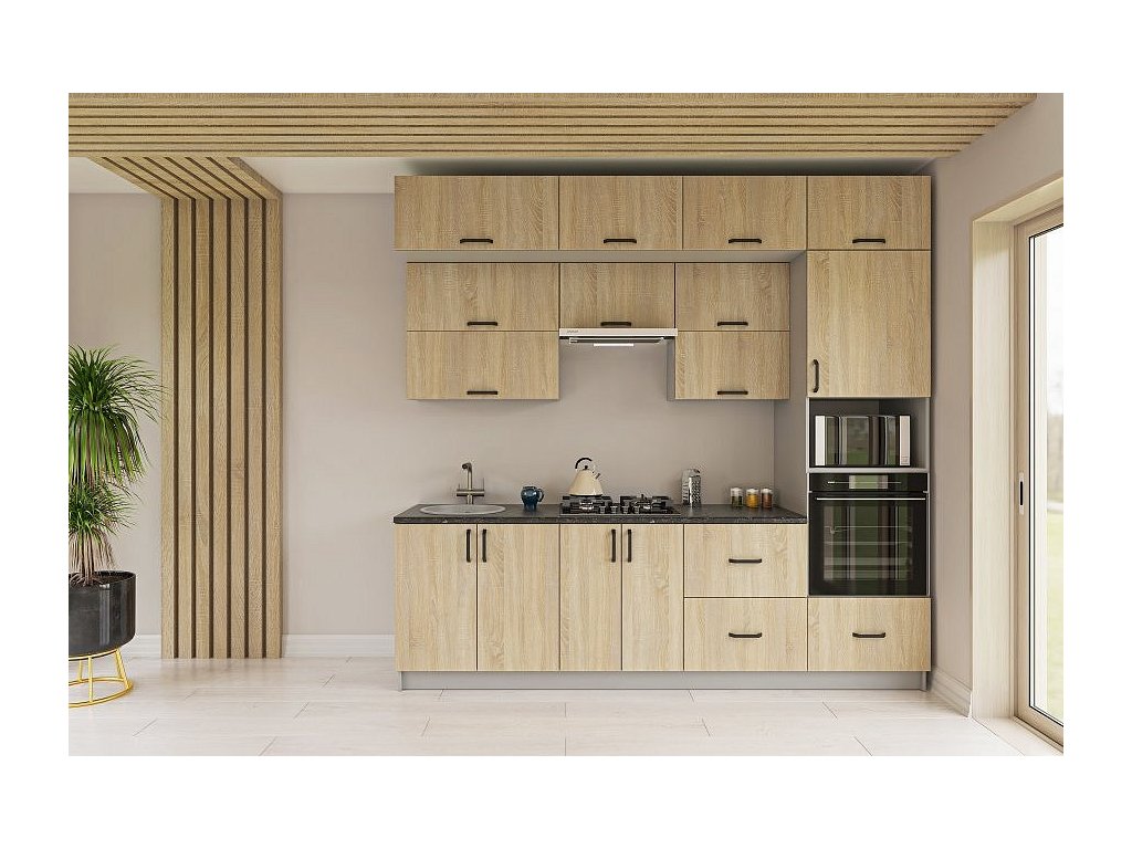 Celkové rozměry kuchyňské linky (š,v,h): 260 x 250 x 48 cm