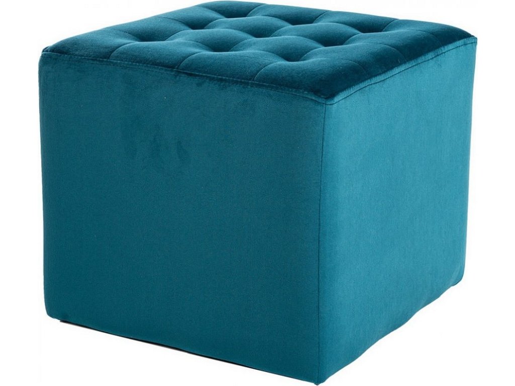 CASA 11025 Měkký polstrovaný taburet - puf oceníte nejen jako pohodlnou opěrku pod nohy či na sezení, ale také jako elegantní doplněk do Vašeho interiéru. Čalounění je z látky aksamit (bluvel 85) v tyrkysové barvě.