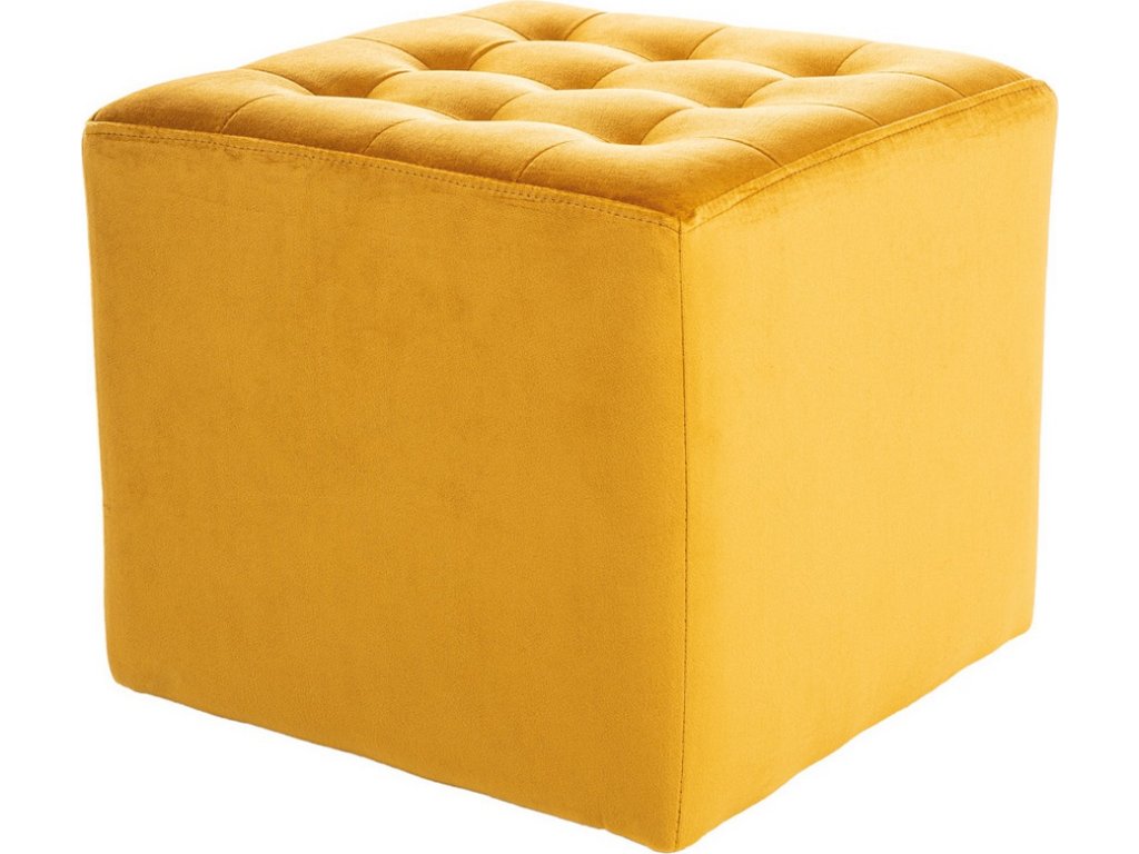 CASA 11025 Měkký polstrovaný taburet - puf oceníte nejen jako pohodlnou opěrku pod nohy či na sezení, ale také jako elegantní doplněk do Vašeho interiéru. Čalounění je z látky aksamit (bluvel 68) ve žluté curry barvě.