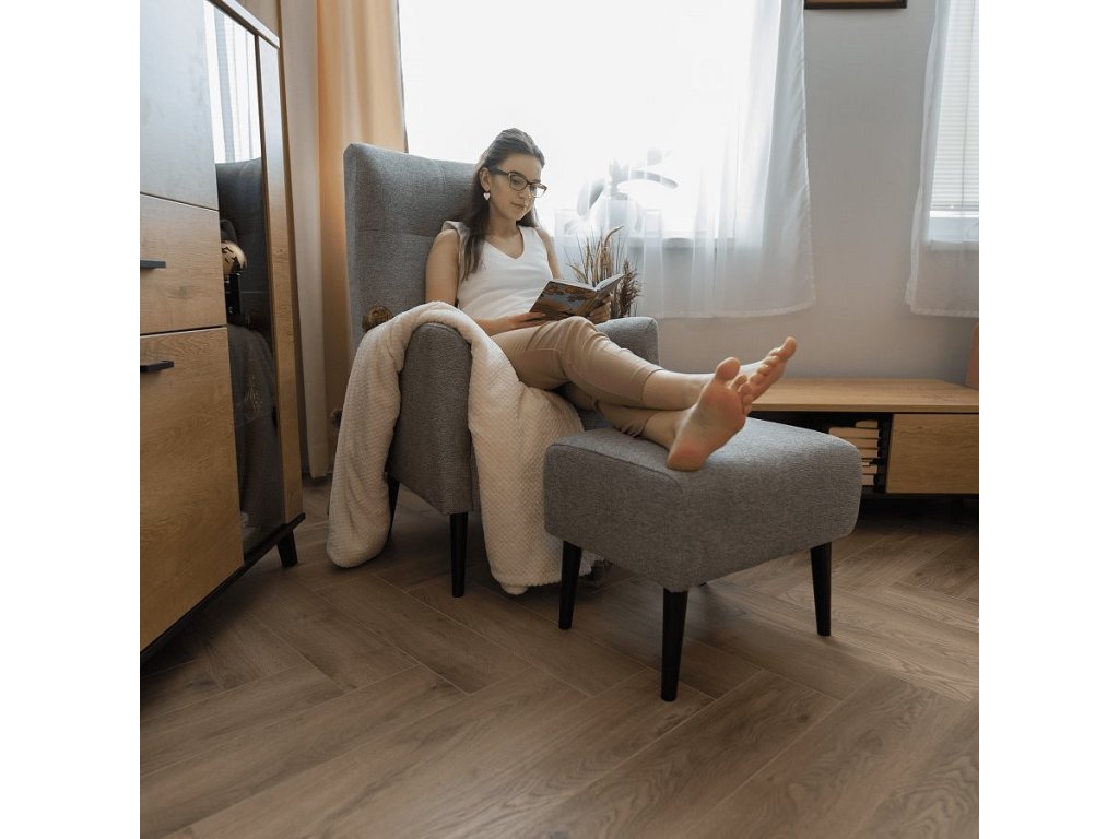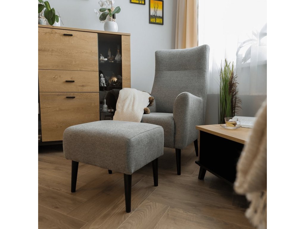 Pohodlný taburet SAMY se skvěle hodí k retro křeslu SAMY ve stejném designu. Taburet má dřevěné nožky v černém provedení a je potaženo kvalitní látkou Matana 03 šedá. Taburet nabízíme v několika odstínech. Dodáváme v demontu.