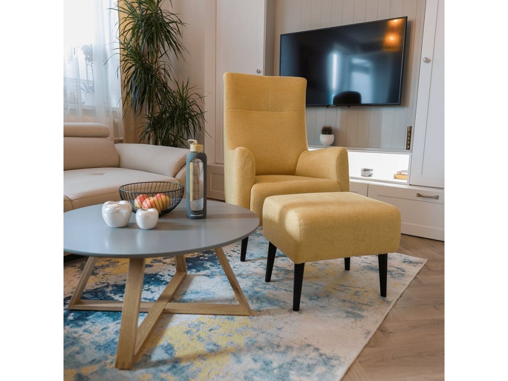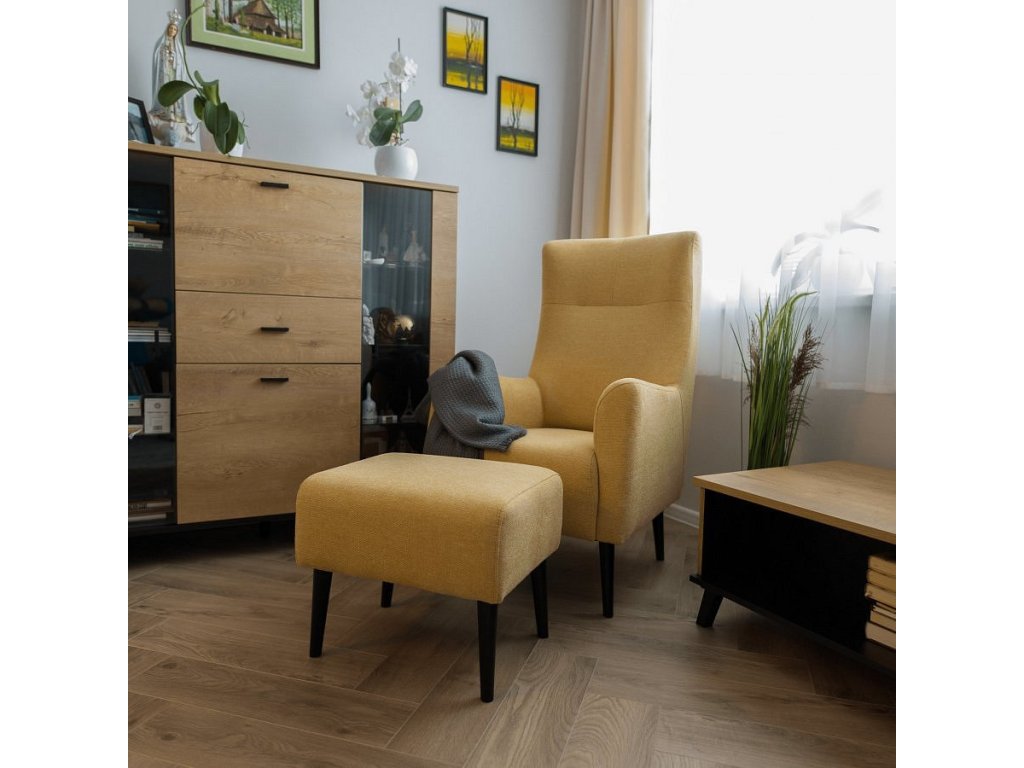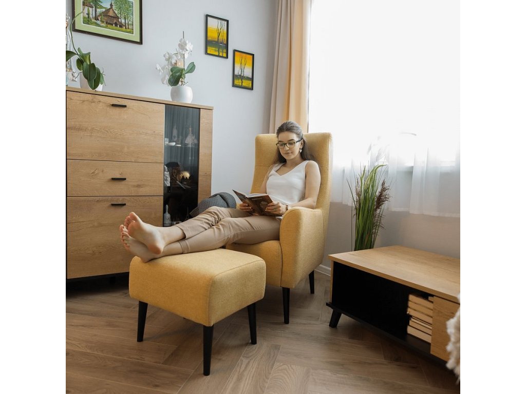 Pohodlný taburet SAMY se skvěle hodí k retro křeslu SAMY ve stejném designu. Taburet má dřevěné nožky v černém provedení a je potaženo kvalitní látkou Matana 09 žlutá. Taburet nabízíme v několika odstínech. Dodáváme v demontu.