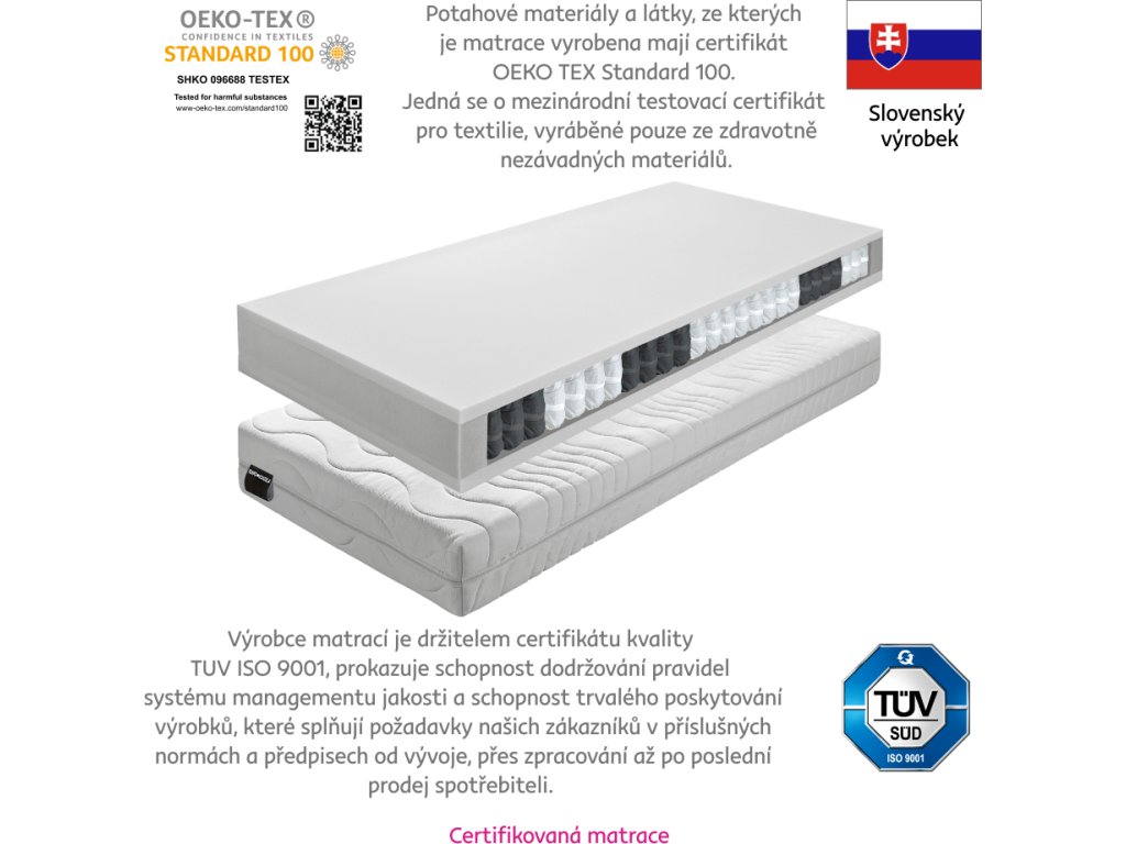 Materiál: taštičkové pružiny / polyuretanová pěna / antialergický potah / plst
