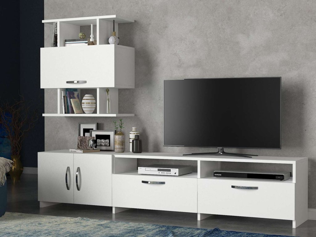 Představujeme obývací stěnu, která přináší do vašeho obývacího pokoje elegantní a moderní design. Tato stylová sestava v bílé barvě je navržena tak, aby poskytovala praktické a estetické řešení pro vaše multimediální zařízení a další potřeby.