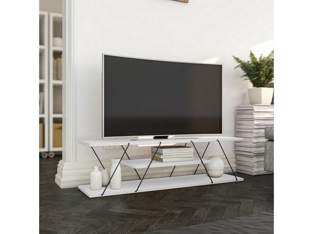 Elegantní televizní solek stolek navržený v industriálním stylu, ideální pro každý moderní obývací pokoj. Kombinace černé kovové konstrukce a dekoru matné bílé dodává stolku sofistikovaný vzhled, který zaujme na první pohled. Materiál je Melamin, VT laminát (18 mm) a kov. Praktický úložný prostor díky odkládací polici, která poskytuje dostatek místa pro elektroniku, dekorace nebo knihy. Kvalitní laminátová deska zajišťují odolnost a dlouhou životnost. Dodáváme v demontovaném stavu.