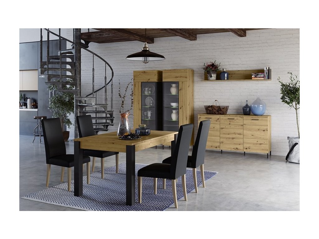 CASA 75091 Televizní stolek se dvěma výklopnými dvířky. Stolek je vyroben z kvalitní LTD v barvě dub artisan. Úchyty jsou z černého plastu. Nožky jsou kovové černé. Dodáváme v demontovaném stavu.