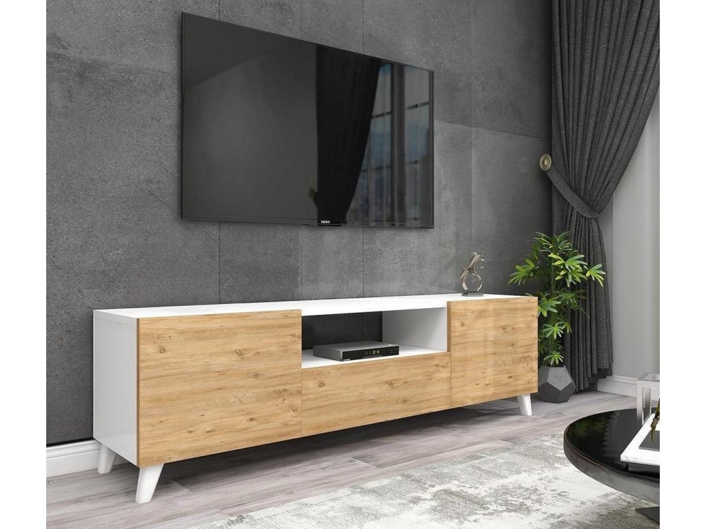 CASA 36062 Televizní stolek dvoudveřový je vyroben z kvalitní desky LTD nenáročné na údržbu, v barevném provedení bílá/borovice. Tloušťka materiálu - 18 mm. Dodáváme v demontovaném stavu.