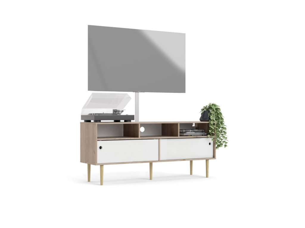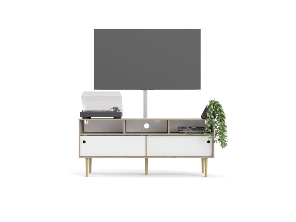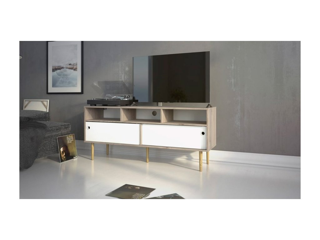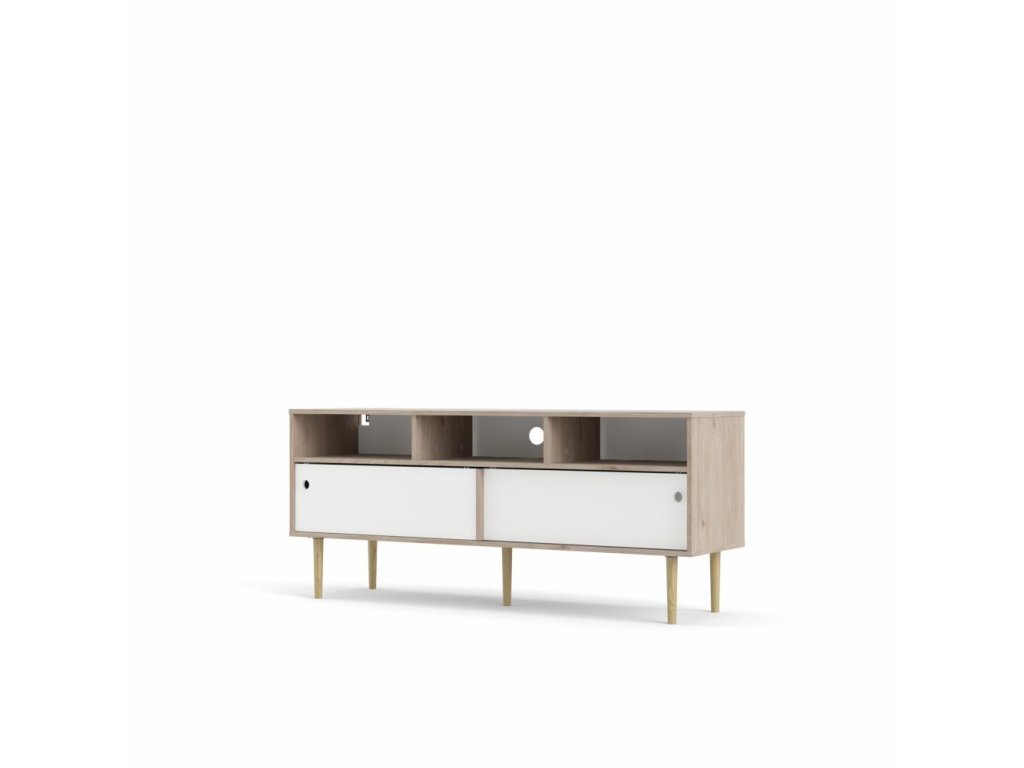 TV stolek Ruby díky svému provední nabízí dostatek prostoru nejen na televizi. S tímto stolkem budete mít doma přehledný a organizovaný pořádek. A pokud máte rádi retro styl, pak je tento stolek pro Vás jako stvořený. Je zhotovený z lamina které je odolné a snadné na údržbu. Retro vzhled zdůrazňují vysoké nožky , kulaté výřezy místo úchytek a posuvné dvířka. Stolek nabízíme ve dvou barevných provedeních. Je dodávaný v demontu a součástí je montážní plánek včetně všech potřebných spojovacích materiálů Vyobrazené dopňky a dekorace nejsou v ceně.