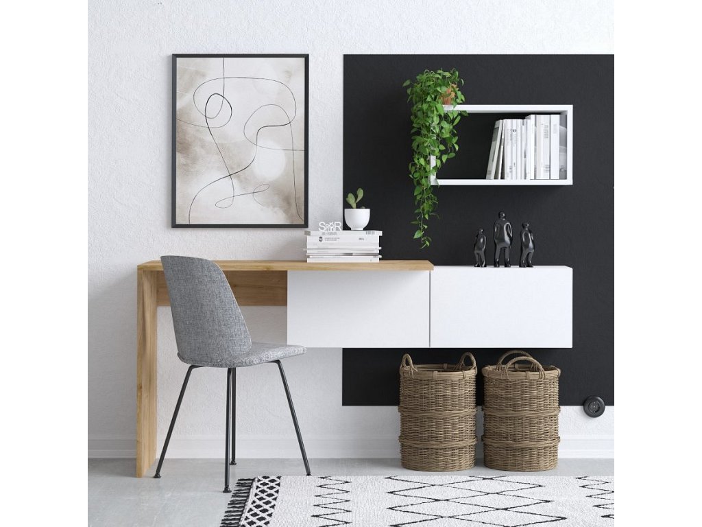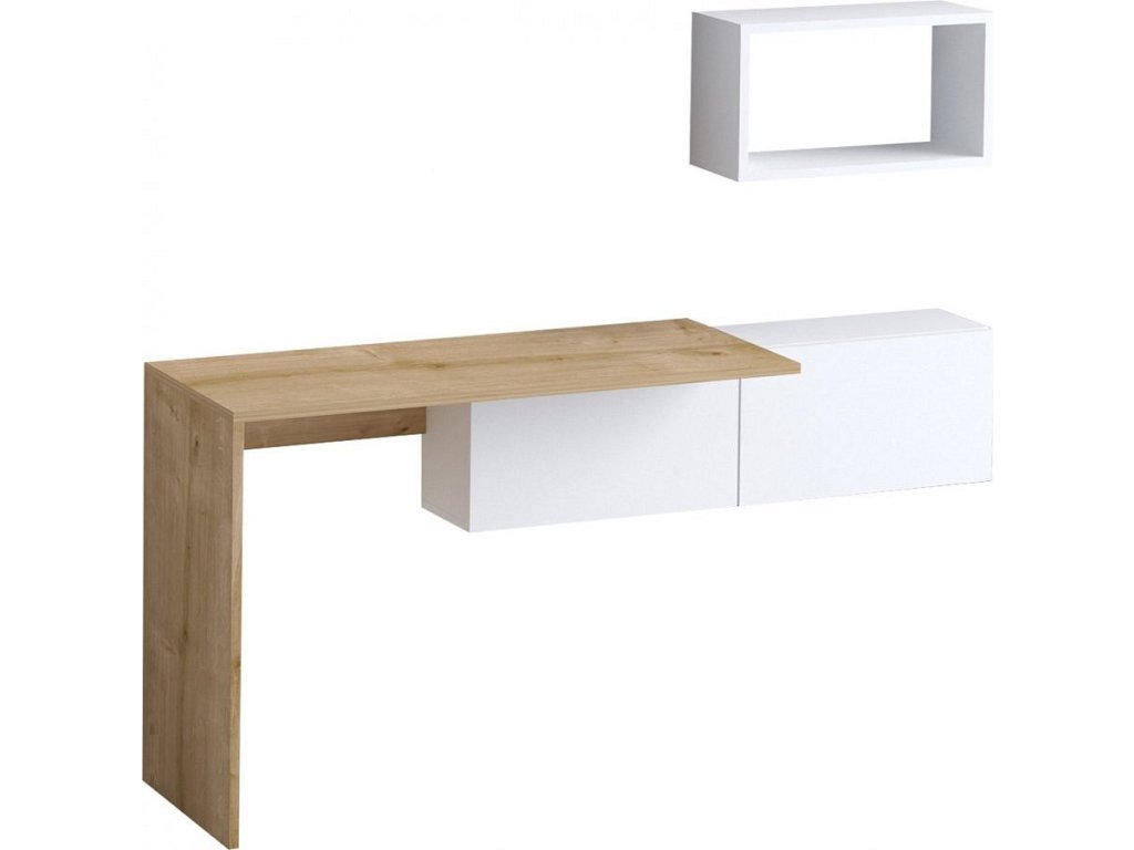 Tiff závěsný pracovní stůl se skříňkou, bílá / dub