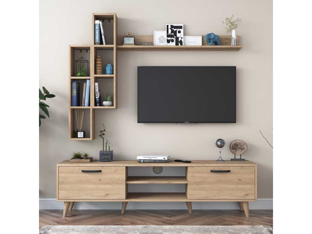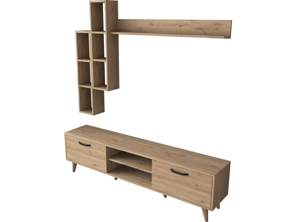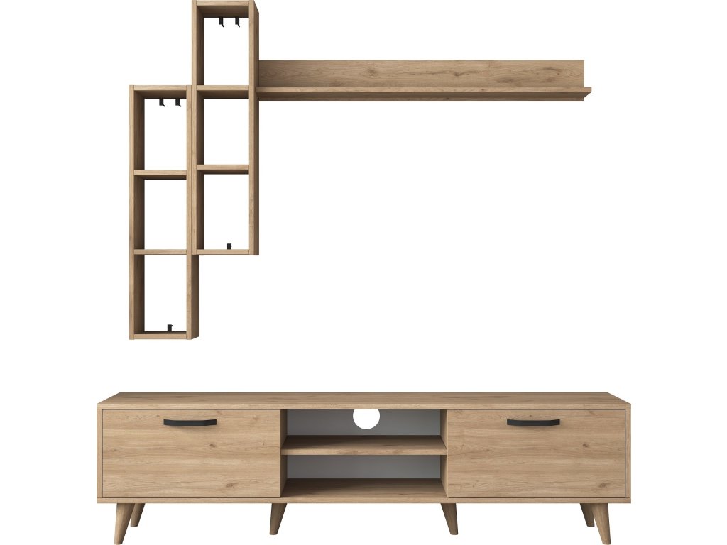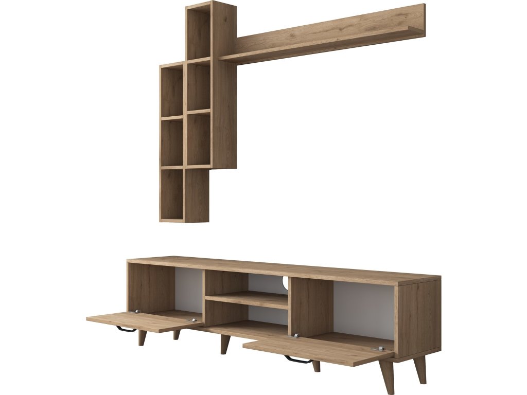Obývací stěna je stylovým a praktickým doplňkem, který pozvedne vzhled vašeho obývacího pokoje. Vyrobena z kvalitního melaminu a VT laminátu v dekoru ořechu, přináší do interiéru přírodní eleganci a teplý vzhled. Sestava zahrnuje praktické úložné i vystavovací prostory, které vám pomohou vytvořit organizovaný a estetický domov.