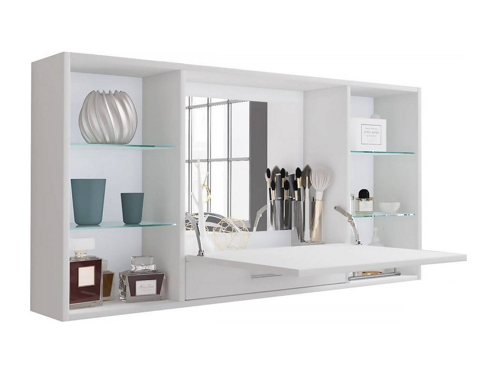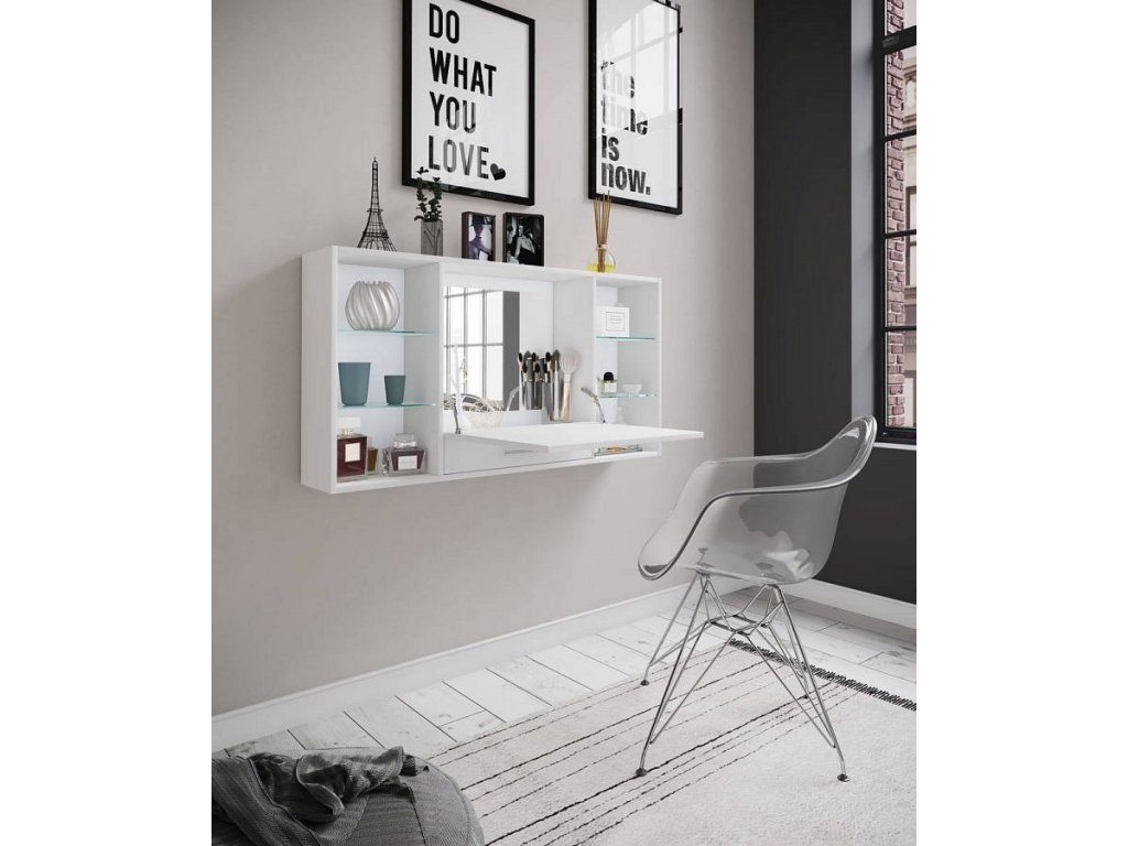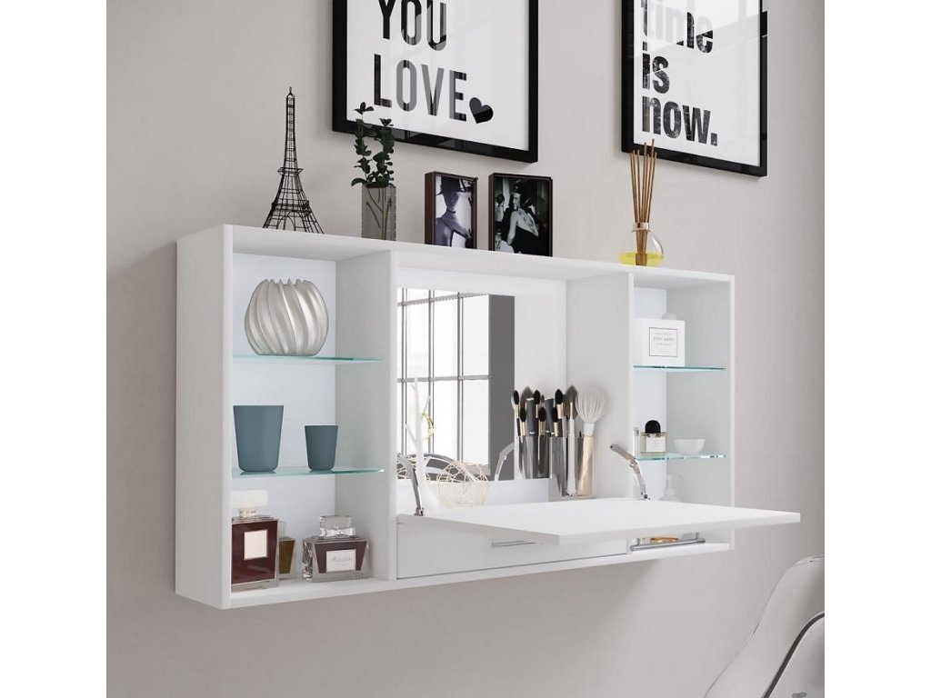 Hlavní vlastnosti: - Zrcadlo lze namontovat buď na zeď, nebo na dvířka police - Jedna zásuvka s rukojetí z ušlechtilého kovu - Šest otevřených přihrádek poskytuje dostatek úložného prostoru - Velkou přihrádku lze rozložit pomocí robustních kovových pantů - Kvalitní a stabilní zpracování - Imitace textury dřeva - Plocha na líčení nebo stůl cca š. 53 cm x h. 45 cm - Rozměry nástěnné police cca v. 60 x š. 115 x h. 20 cm Nástěnná police VCM „Teala Mirror“ není jen vizuálním prvkem, ale také malým, krásným místem na líčení, které nabízí dostatek místa pro řadu kosmetických potřeb. Nástěnná police VCM „Teala mirror“ se ideálně hodí i jako kancelářský stůl. VCM se od 70. let specializuje na design, výrobu a distribuci nábytku s férovým poměrem cena/výkon, a tím již zdobí miliony domácností.