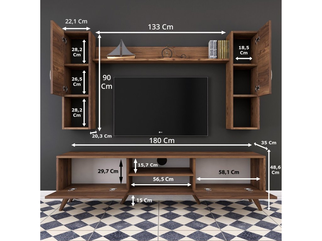 Obývací stěna je navržena tak, aby uspokojila potřeby moderních domácností. Poskytuje dostatek prostoru pro uskladnění i vystavení dekorací, zatímco její design pozvedne vzhled vašeho obývacího pokoje.