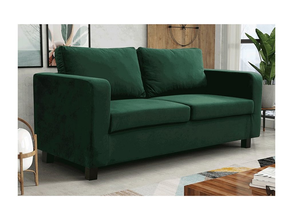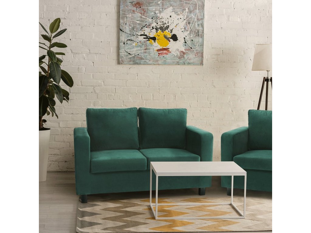 Elegantní trojmístná pohovka LUANA, potažena ve smargdové látce. Pohovku je možné doplnit křeslem a dvoumístnou pohovkou ve stejném designu. Jádro sezení pružina Faliste a PUR pěna.