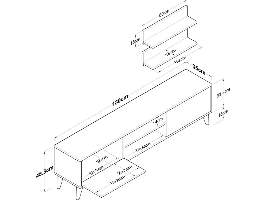 - TV stolek: rozměry 180 x 35 x 48,6 cm – prostorný a stabilní pro umístění televize a multimediálních zařízení.