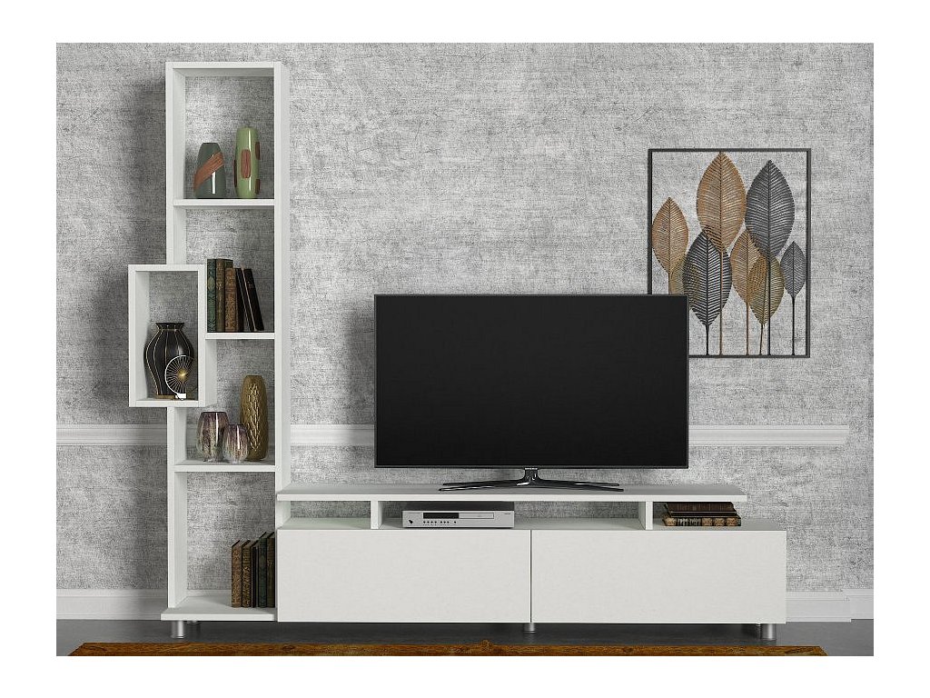 Tato televizní skříňka je nejen esteticky příjemná, ale také velmi praktická. Lze jej snadno připevnit na zeď, čímž ušetříte cenný prostor na podlaze a vytvoříte prostředí bez nepořádku. Bílá barva dodá vašemu obývacímu pokoji nádech elegance a jasu, díky čemuž bude působit prostorněji a příjemněji.