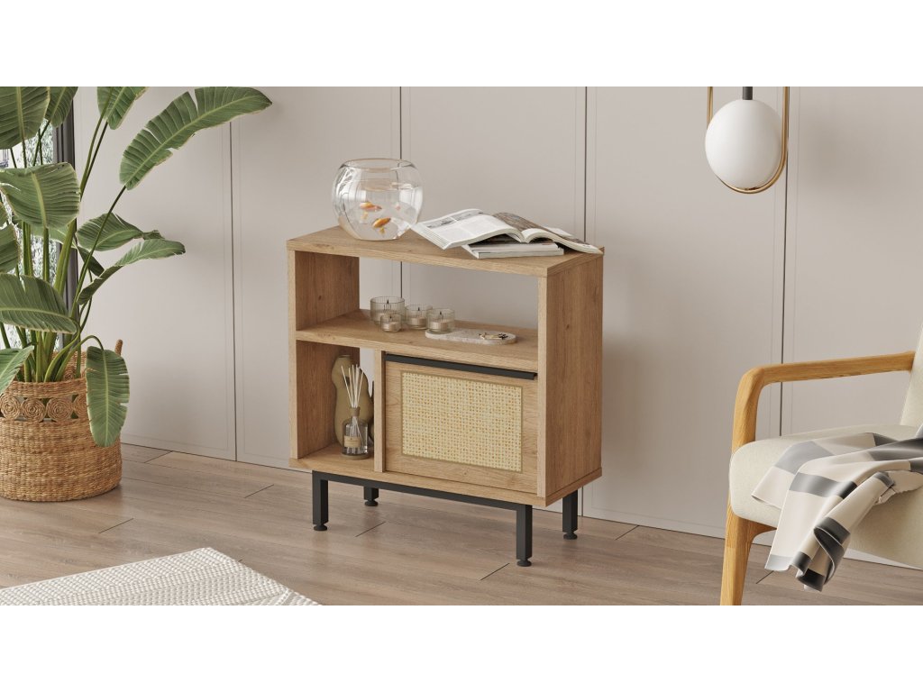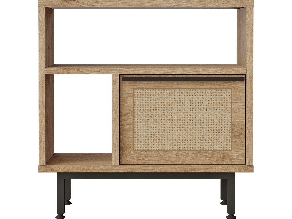 kombinuje praktické vlastnosti s moderním designem. Díky regálku můžete snadno odkládat knihy, časopisy nebo dekorace, zatímco plné dvířko skryje drobné předměty, které chcete mít po ruce, ale ne na očích. Tento stolek se hodí jak k sedačce, tak do rohu místnosti, kde poskytne praktické využití a elegantní vzhled.