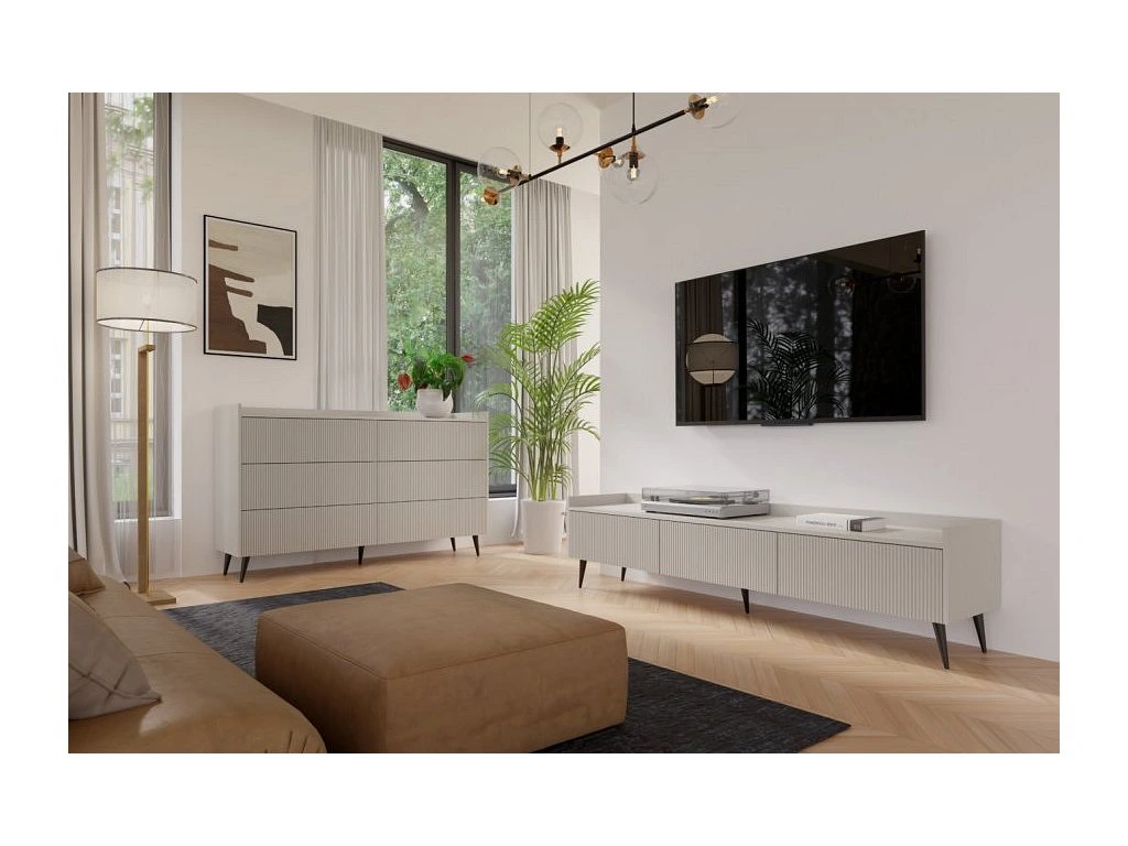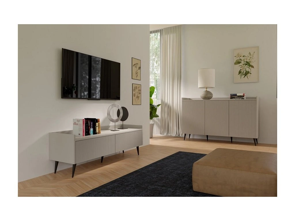 Televizní stolek Adleta R5 je vyroben z lamina v dekoru kašmír s kombinací lamel. Lamino je odolné a jistě oceníte jeho snadnou údržbu. Stolek je dodán v demontu. Součástí balení je montážní návod včetně všech spojovacích prvků.