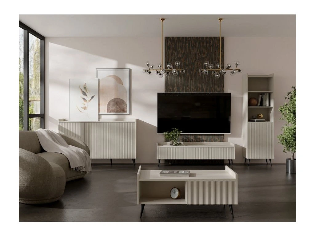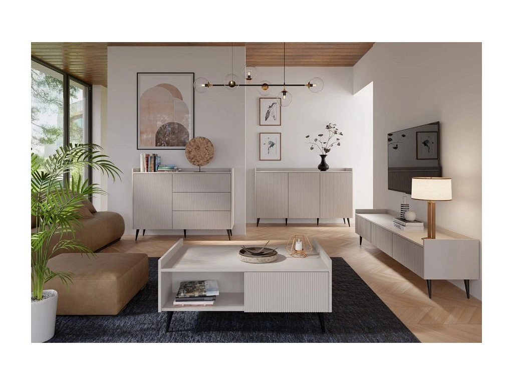 Televizní stolek Adleta R7 je vyroben z lamina v dekoru kašmír s kombinací lamel. Lamino je odolné a jistě oceníte jeho snadnou údržbu. Stolek je dodán v demontu. Součástí balení je montážní návod včetně všech spojovacích prvků.