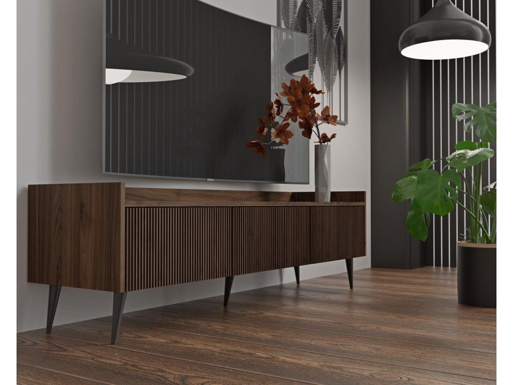 Série nábytku Adleta vyniká elegantním stylem, originalitou a funkčností. Drážkovaná dvířka v kombinaci s krásnou barvou ořechového dřeva se skvěle hodí do různých interiérových konceptů – od moderních až po klasické. Tato sestava zahrnuje knihovnu, noční i konferenční stolek, komody a TV stolky v různých provedeních. Splňuje všechna očekávání náročných uživatelů v oblasti kvality a zpracování.