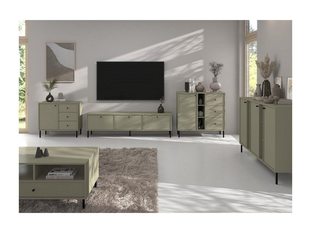 Série Tomila nabízí noční, TV i konferenční stolky, vitríny a komody v široké škále tvarů, barev a typů noh.