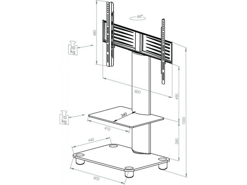 - Držák: Vhodný pro většinu plochých LED / LCD / plazmových obrazovek do úhlopříčky 37 palců (94 cm) s maximální hmotností 30 kg.