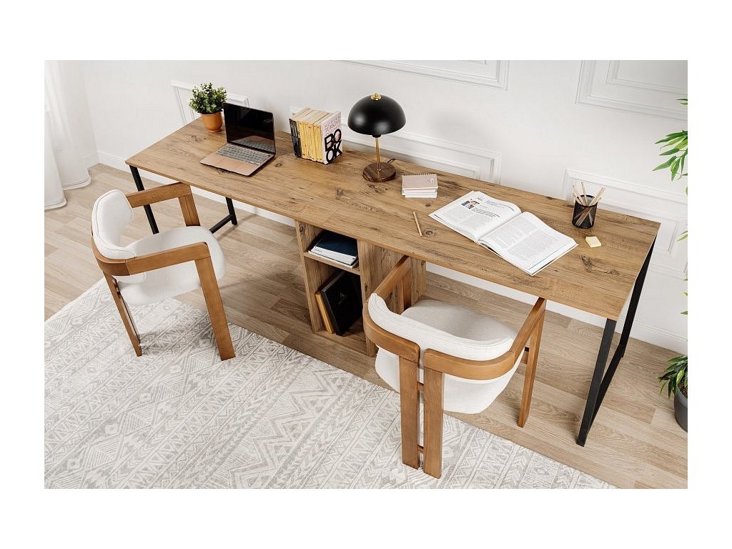 S šířkou 240 cm a četnými policemi poskytuje tento stůl dostatek úložného prostoru pro všechny vaše knihy, kancelářské potřeby a studijní materiály. Prostřední police o šířce 34 cm a výšce 50 cm je ideální pro uložení nezbytností po ruce při práci. Stůl lze také připevnit ke zdi, což zajišťuje stabilitu a bezpečnost.